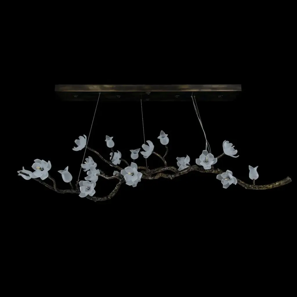 Churippu Magnolia & Tulip Glass Bronze Oblong Nineteen-Light Chandelier