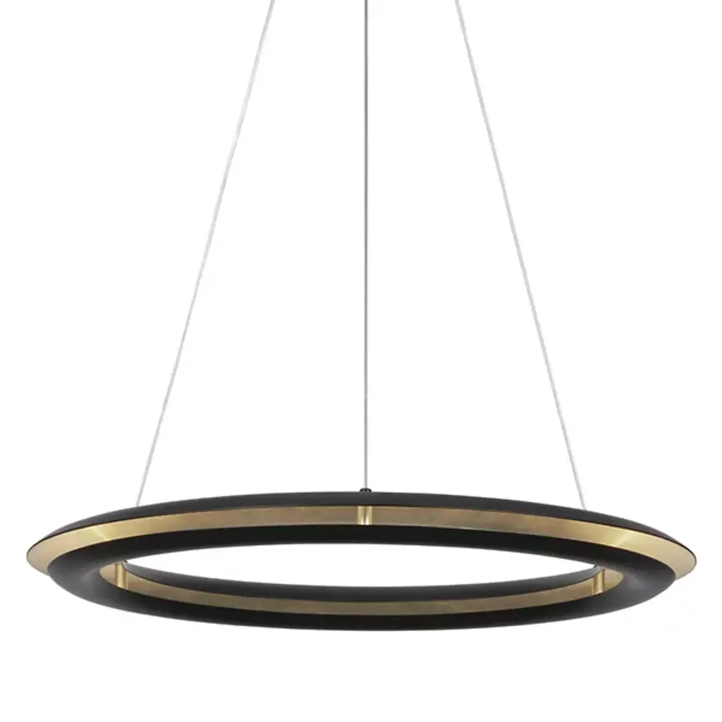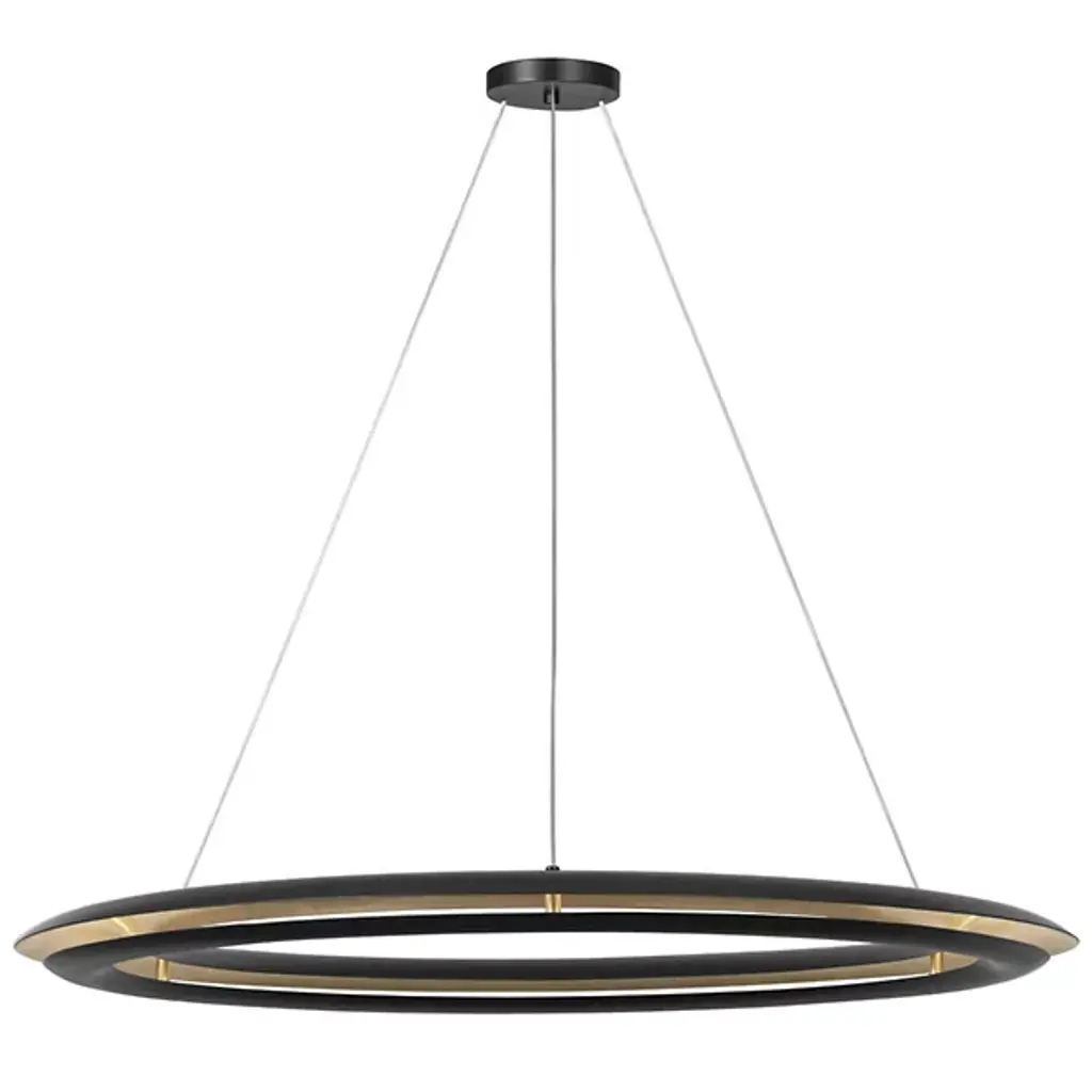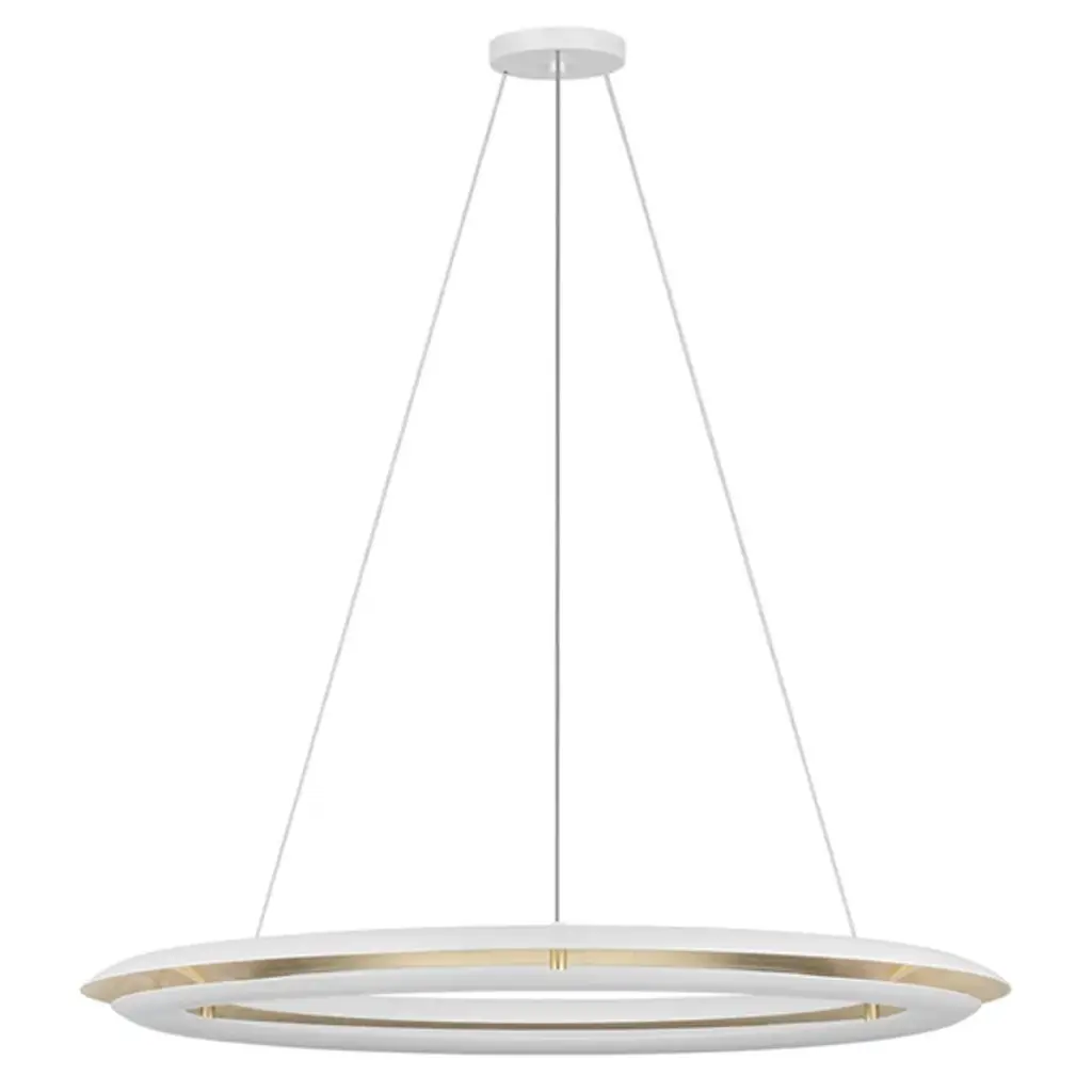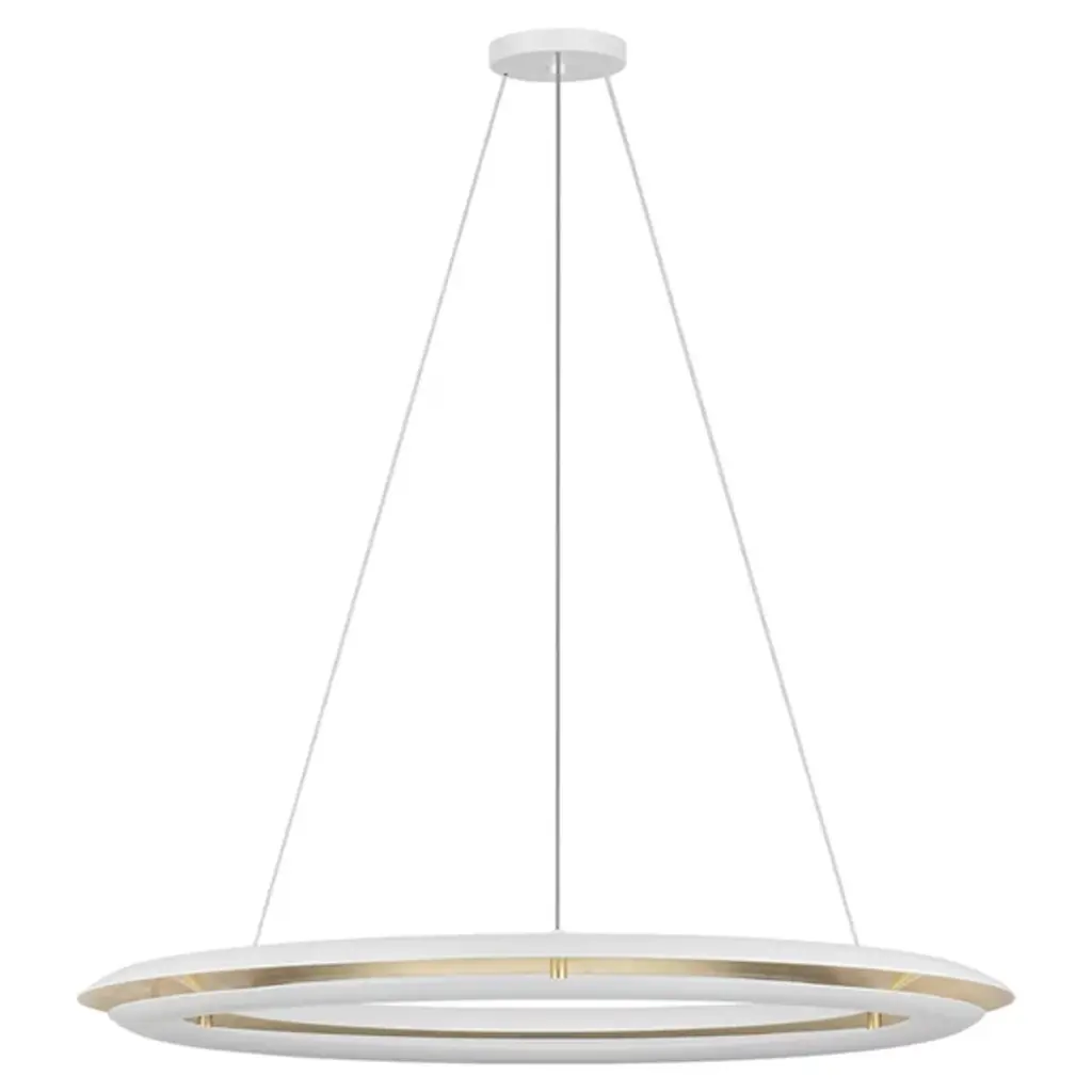 The dual donut shape of the Cielo LED Chandelier from Visual Comfort Studio offers a commanding contemporary presence to large inside spaces. A Chapman & Myers design with a vintage touch, it descends from a puck canopy via slim cables, placing energy-efficient lamping inside circular steel shades. The shades themselves are spaced out with vertical risers, allowing light to reflect out from between them for an ambient glow contrasted with the shadows cast by the ring.