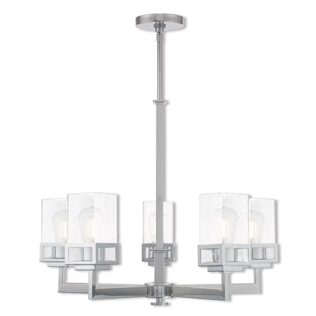 Cindyrella - 5 Light 24" Stem Hung Chandelier - Polished Nickel Finish - Seedy Shade