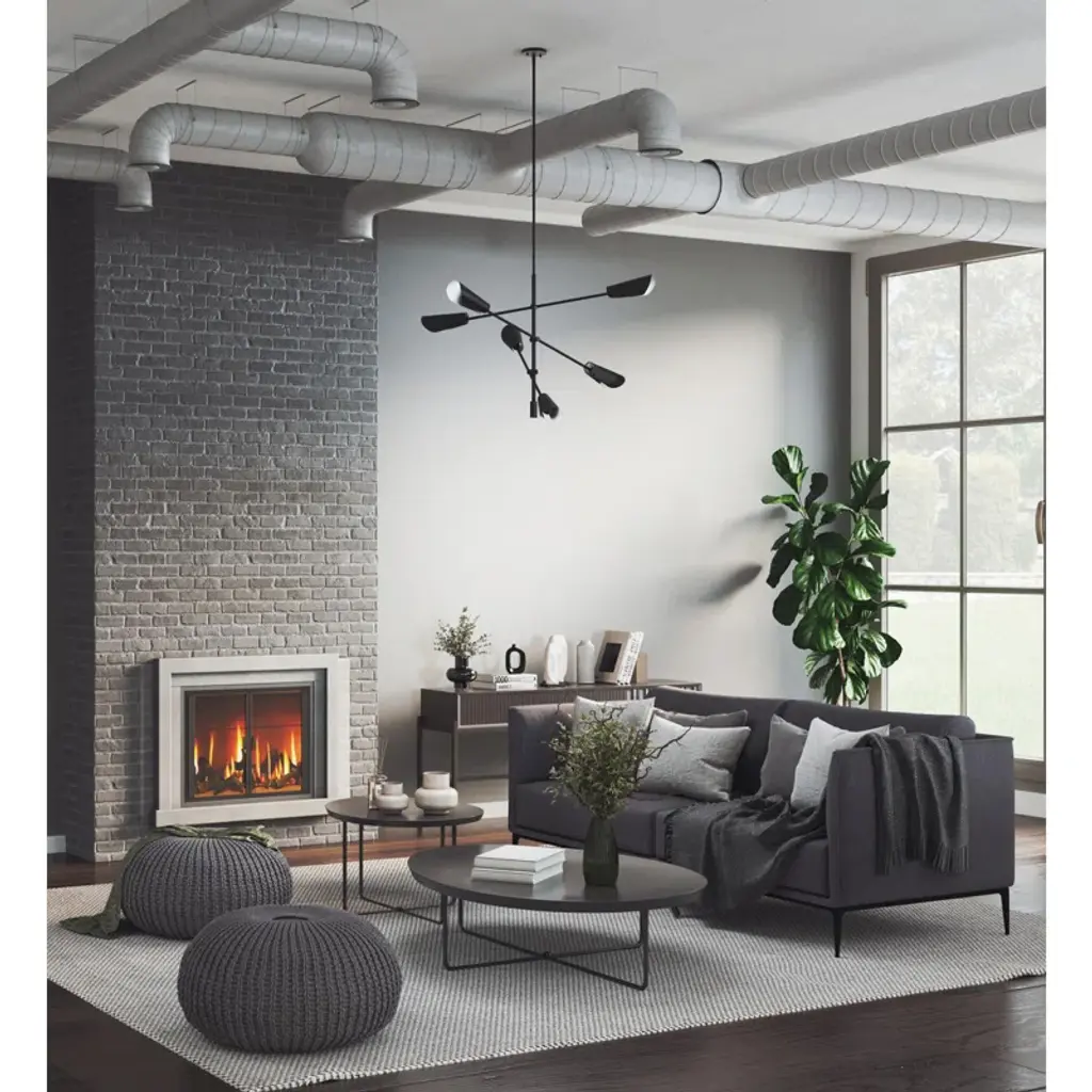 Modern and organic inspirations elegantly meld together. Bold linear frame branches out to embrace smoothly etched opal glass globes that imbue rooms with soft illumination, and fit beautifully into timeless modern, mid-century modern and contemporary settings. The flexible arms of this fixture allow the fixture to be positioned flat or at an angle giving the ability to customize the look.