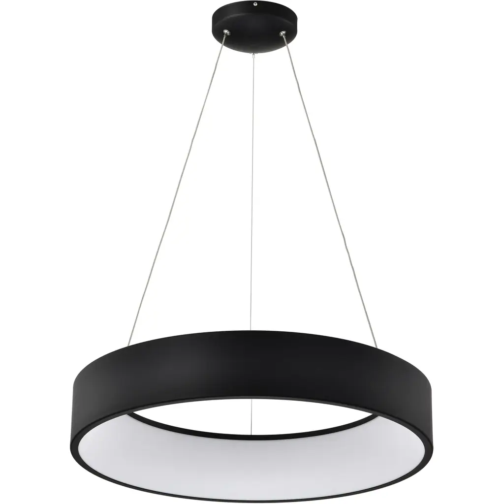The Circuit LED Chandelier by Blackjack Lighting brings a lovely touch to spaces with its simple, recognizable form. This circular pendant showcases a familiar geometric shape while housing energy-efficient lights within its openly styled silhouette. Effortlessly suspended by a set of thin cables, this pendant frames a wide range of spaces with its steel and smooth acrylic diffuser construction, artfully bringing a powerful and pleasing layer of illumination to surroundings.