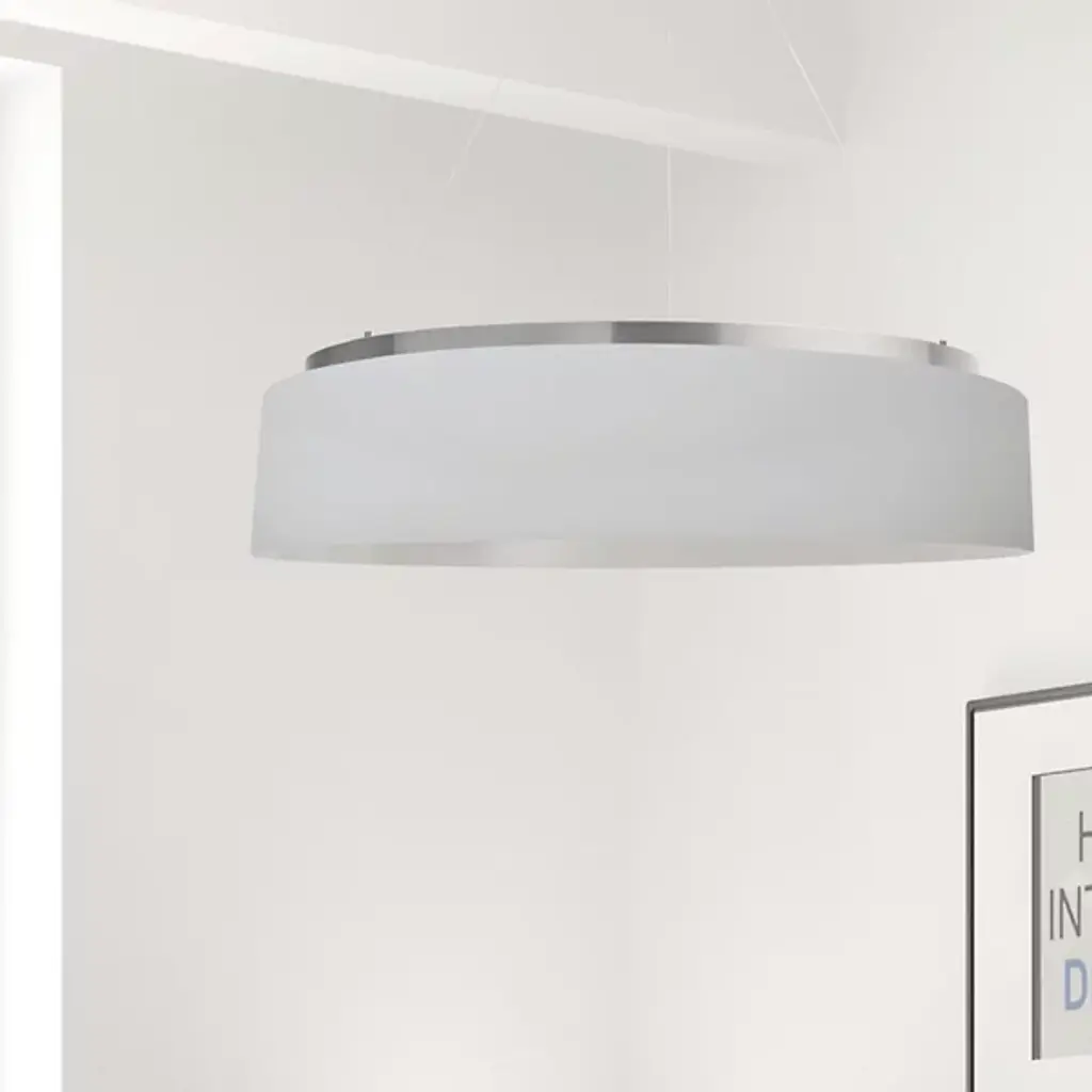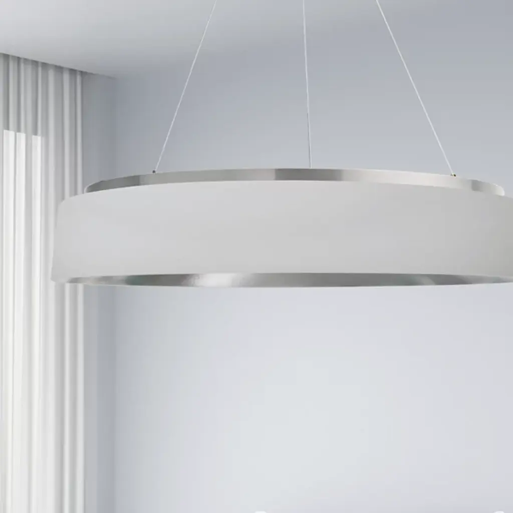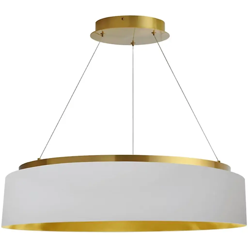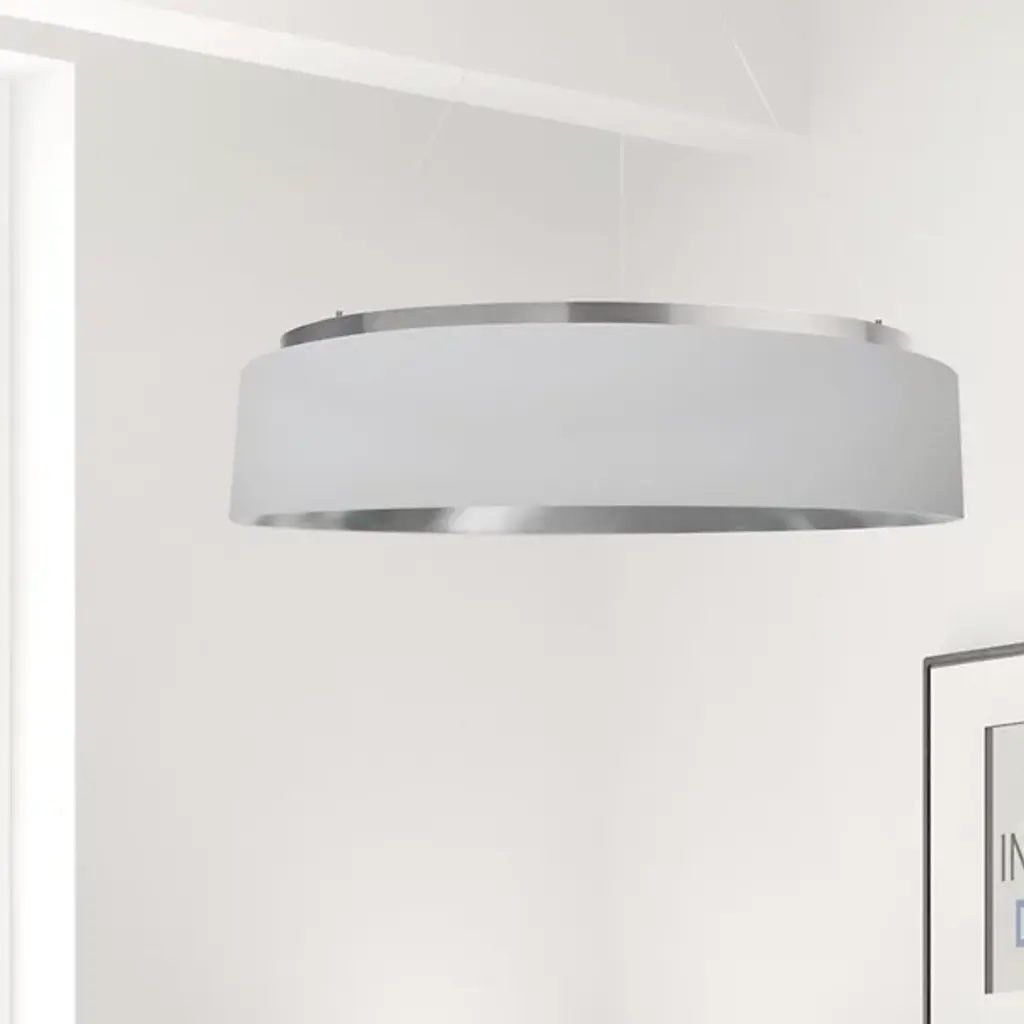 A clean yet soft lighting design for a modern dining area or living room. The Circulo LED Drum Chandelier by Dainolite starts with a metal ring, which includes an acrylic bottom diffuser to even out the light produced by the integrated array of LEDs housed within. A fabric drum shade then clips onto the ring, further diffusing the amount of ambient light and adding to the chandelier’s sense of texture and overall decorative appeal.