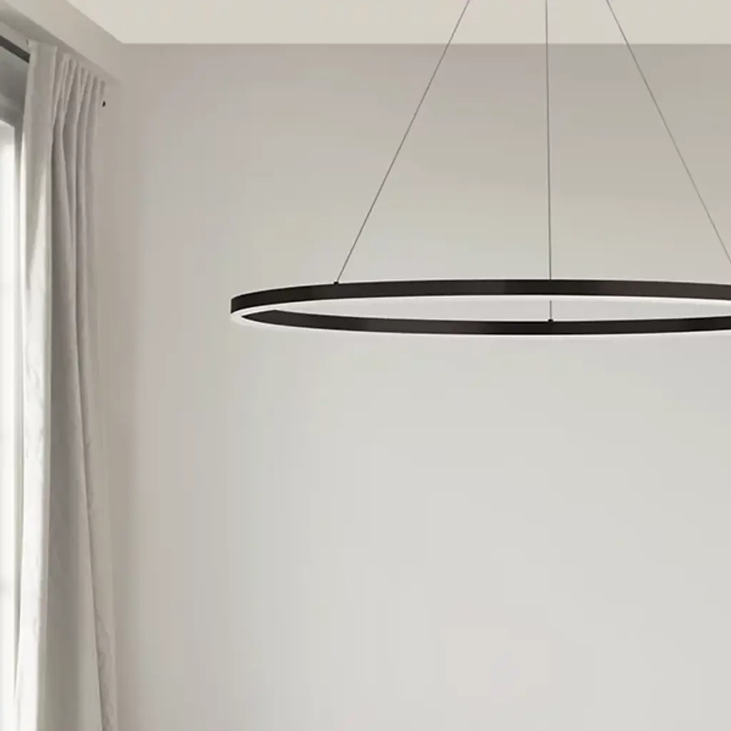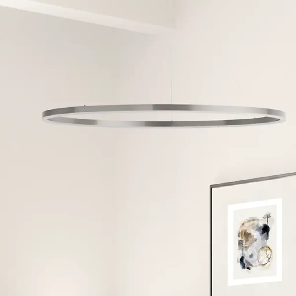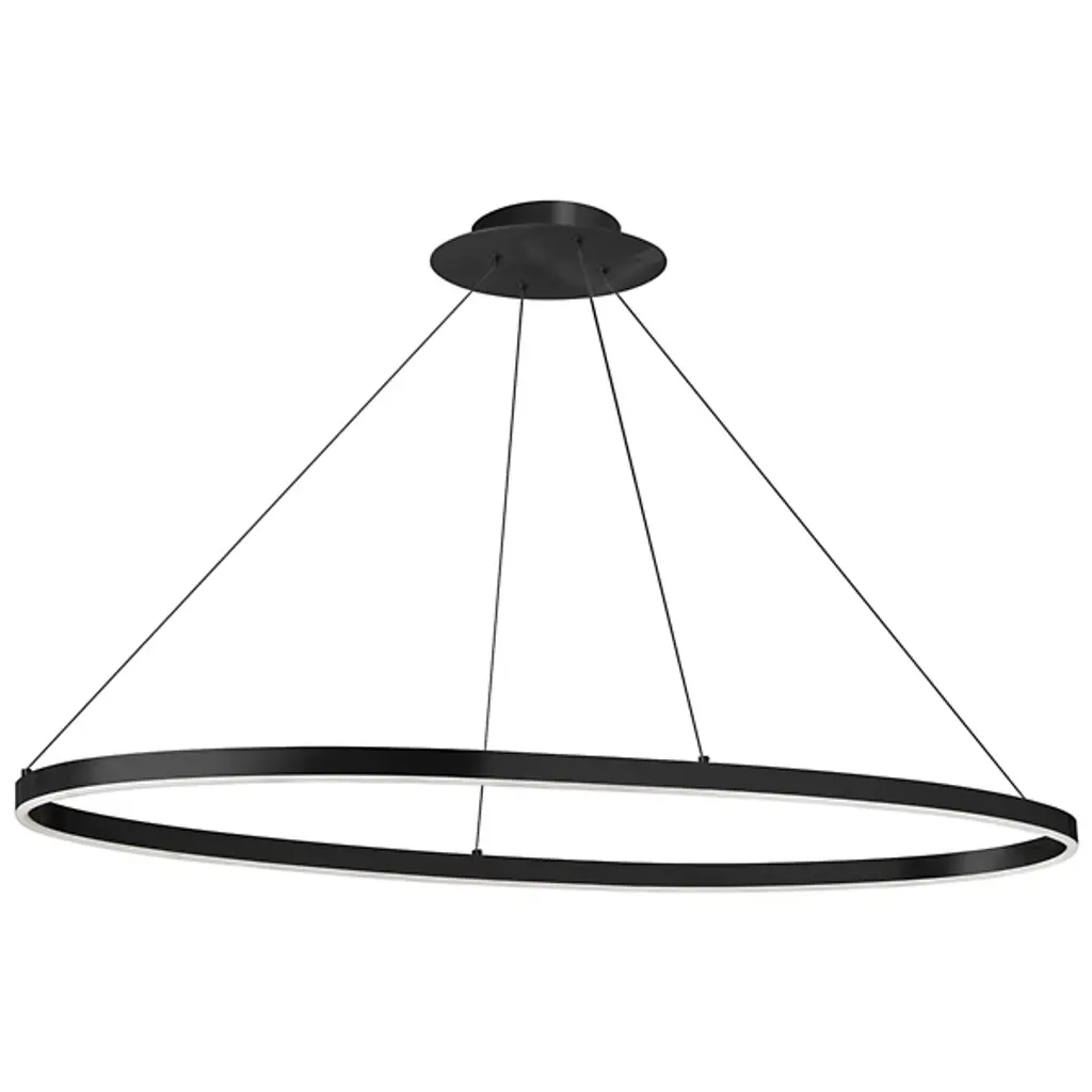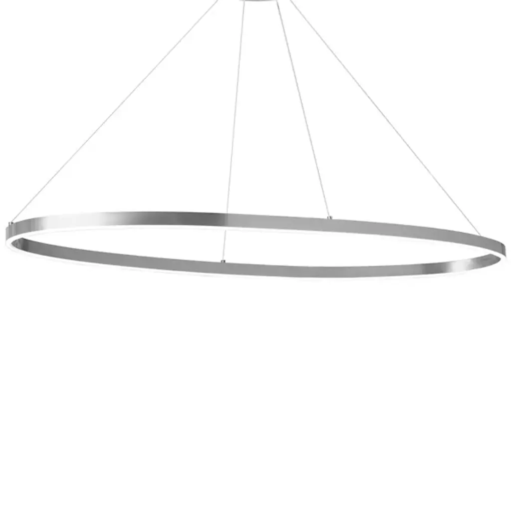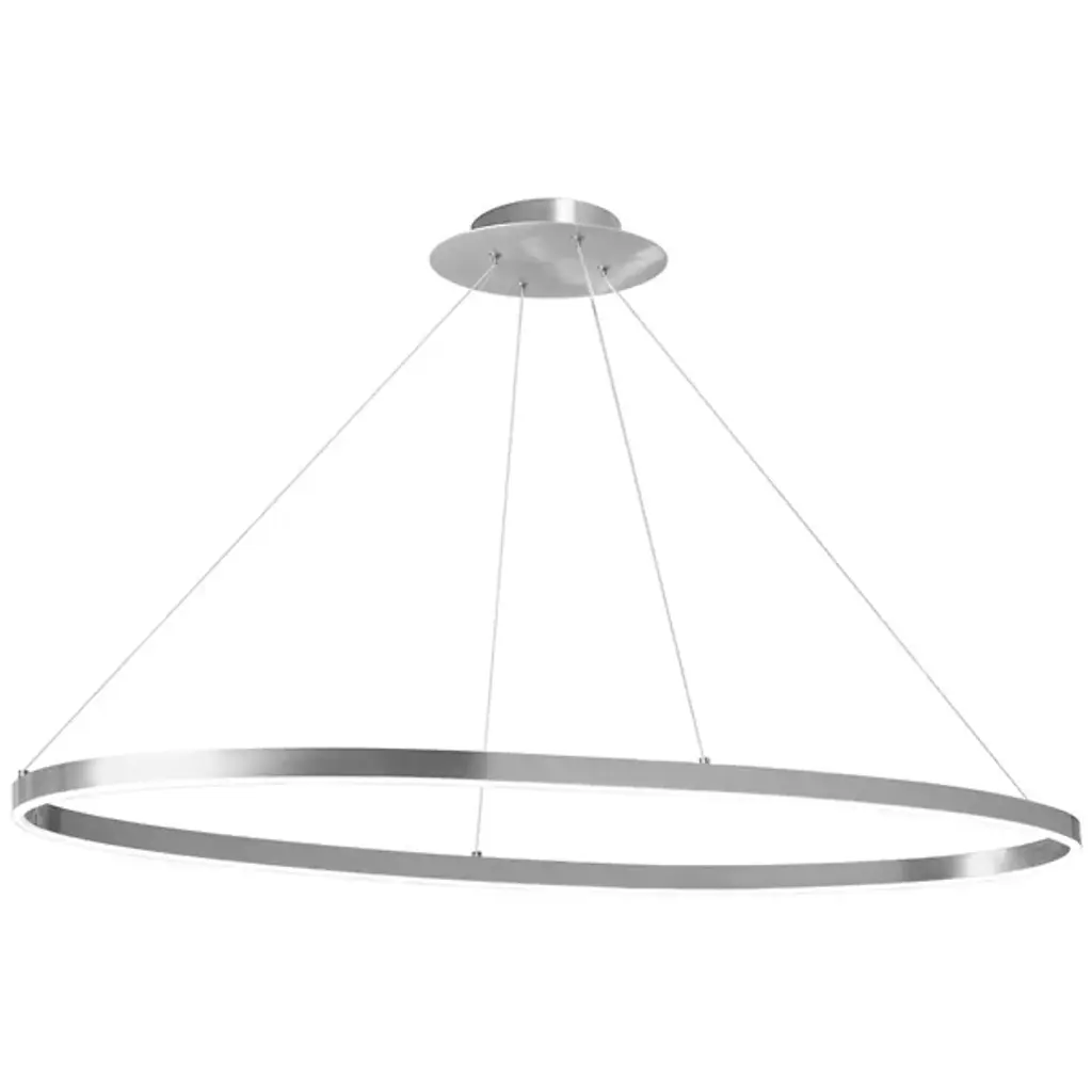 A smooth, speedy lighting look for minimalist spaces. The Circulo LED Oval Chandelier by Dainolite is a smooth, racetrack-shaped fixture suspended from the ceiling canopy by slender metal cables. The bottom of the metal ring is fitted with an acrylic lens, which wokrs to evenly diffuse the light created by the energy efficient array of LEDs housed within. The proportions of this chandelier make it a great option for illuminating a large dining table or kitchen island.