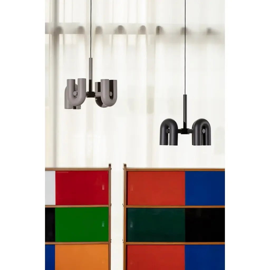 AGO's Cirkus chandelier is a fun, stylish and definitely eye-catching luminaire that is perfect, for example, above the dining table or in the living room. The rotating, U-shaped lampshades allow you to direct the light beams to any directions you like. Manufactured by the Korean brand AGO and designed by BYMARS studio, the lamps of the Cirkus collection play with light and geometrical shapes in an innovative way. The Cirkus lamps are a delightful combination of Korean and Scandinavian design heritage, refined forms and a touch of humor. Their pleasant matte colors and clean lines work perfectly in homes and public environments alike.