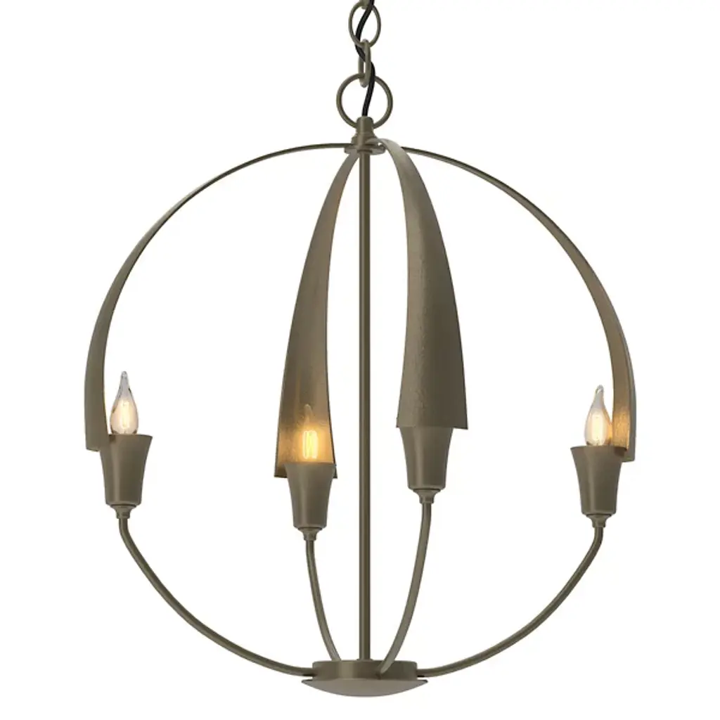 There's no need to make a choice between form and function - as part of the Cirque Collection, this chandelier delivers both. Four hand-forged, tapered steel petals merging at the sculpture's apex set the stage for our re-interpretation of the classic orb chandelier.