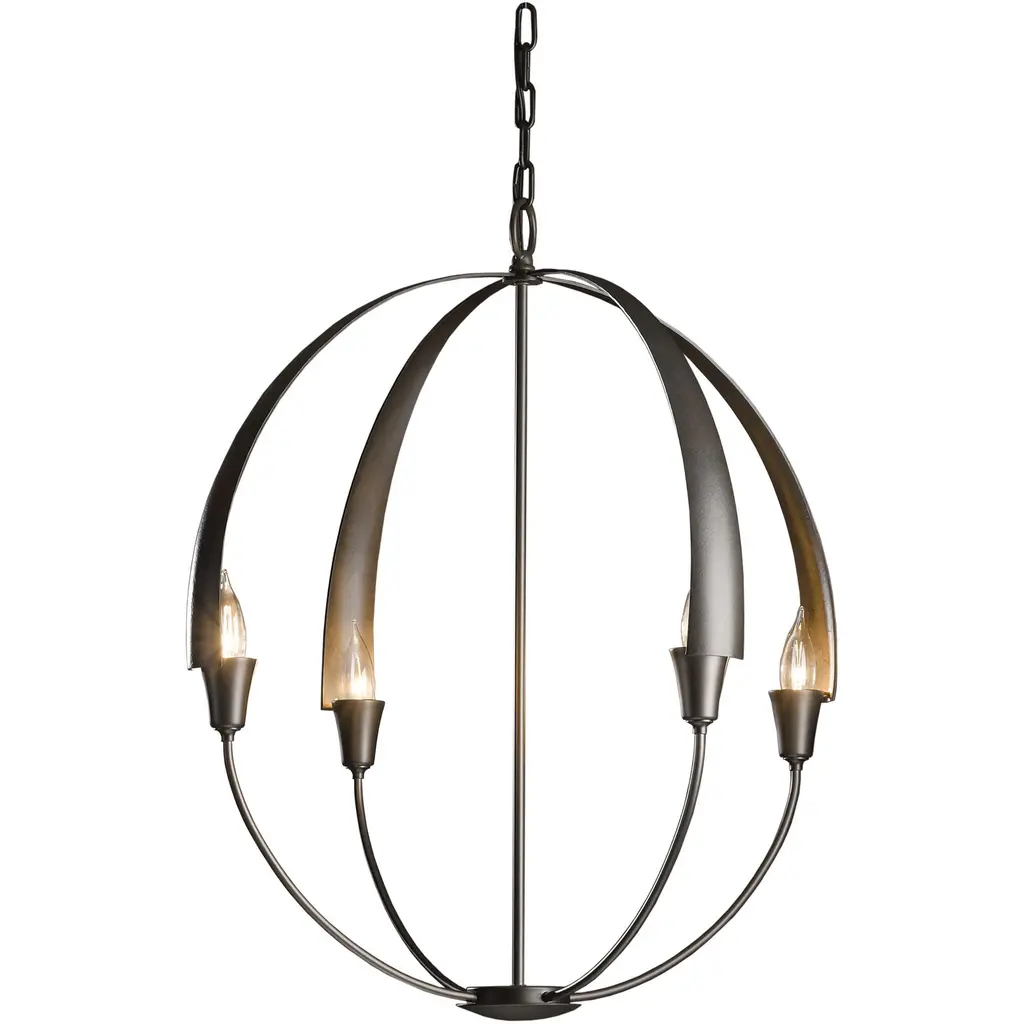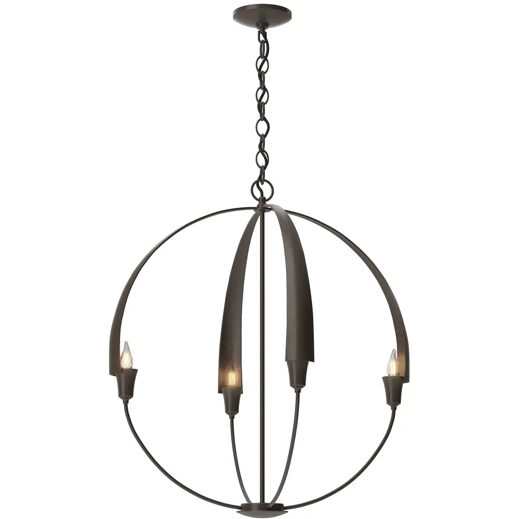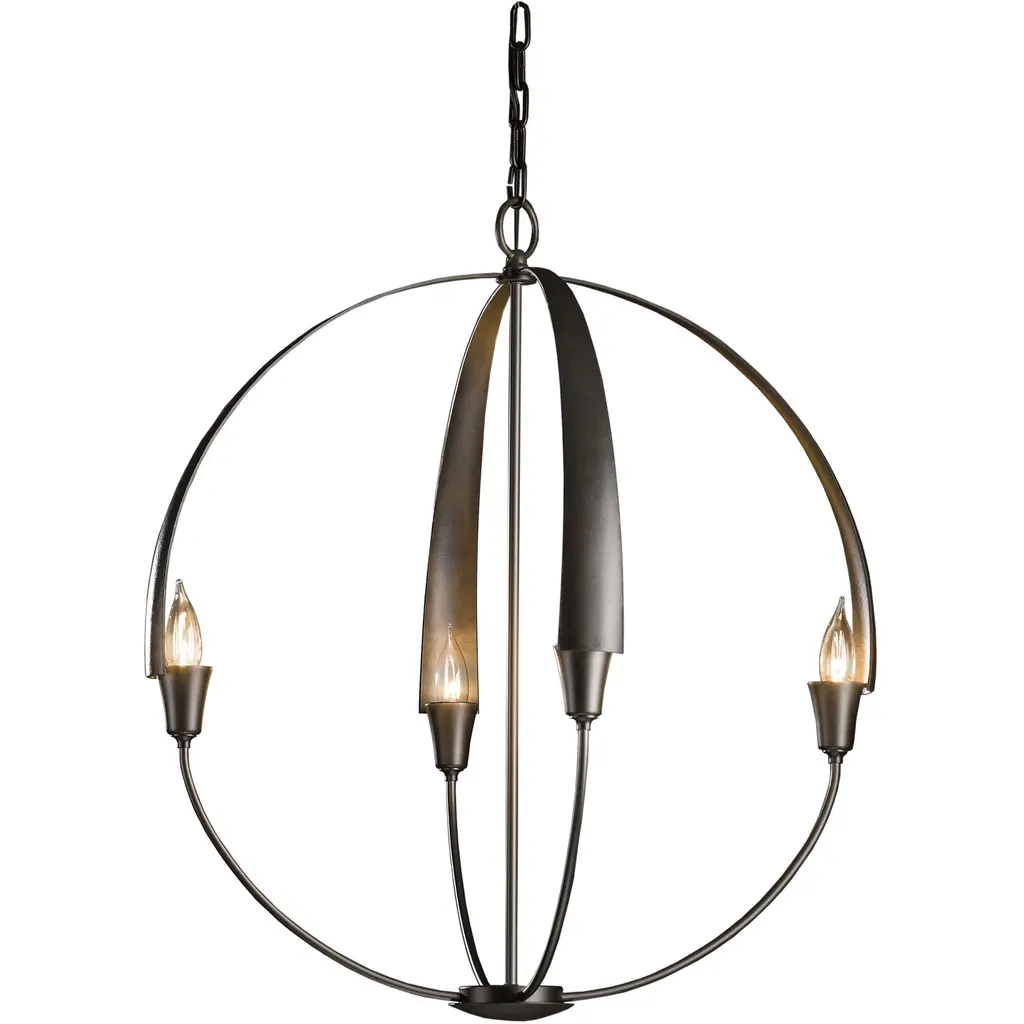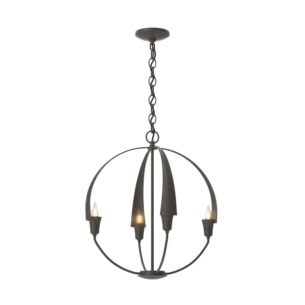 There's no need to make a choice between form and function - as part of the Cirque Collection, this chandelier delivers both. Four large, hand-forged, tapered steel petals merging at the sculpture's apex set the stage for our re-interpretation of the classic Orb Chandelier.