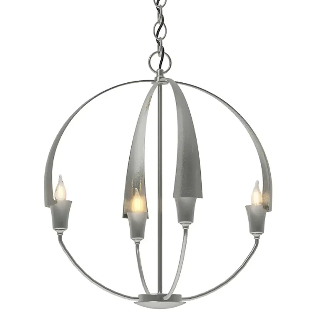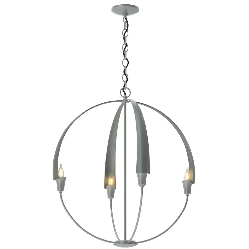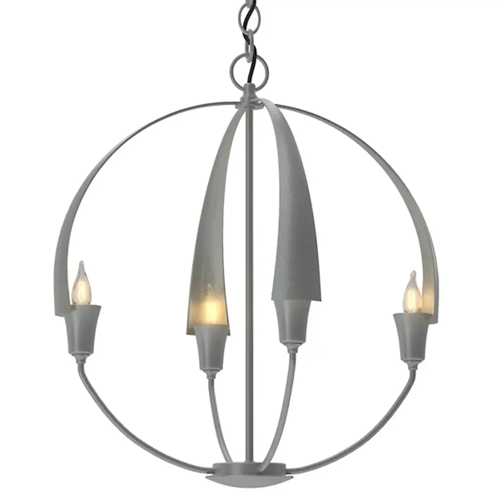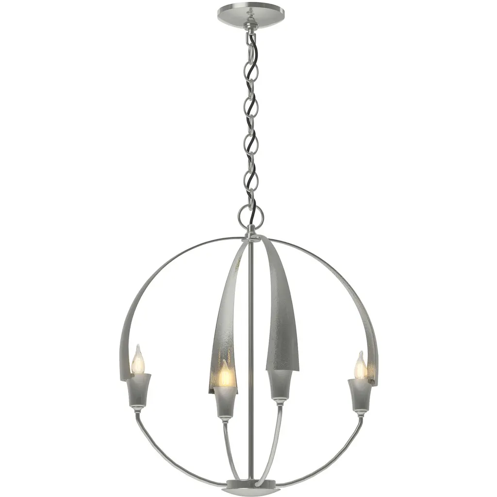 There's no need to make a choice between form and function - as part of the Cirque Collection, this chandelier delivers both. Four large, hand-forged, tapered steel petals merging at the sculpture's apex set the stage for our re-interpretation of the classic Orb Chandelier.