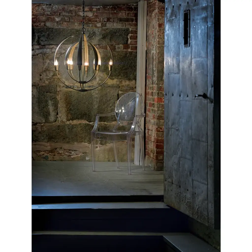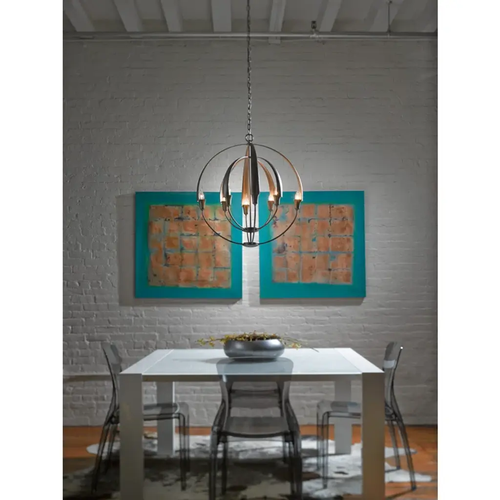 There's no need to make a choice between form and function - as part of the Cirque collection, this large chandelier delivers both. Two concentric orbs are hand-forged into eight tapered steel petals merging at the sculpture's apex.
