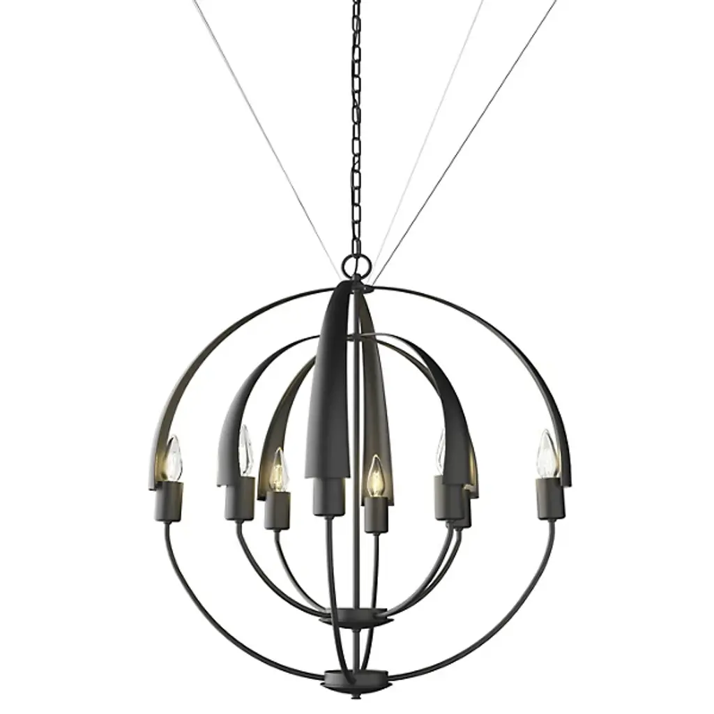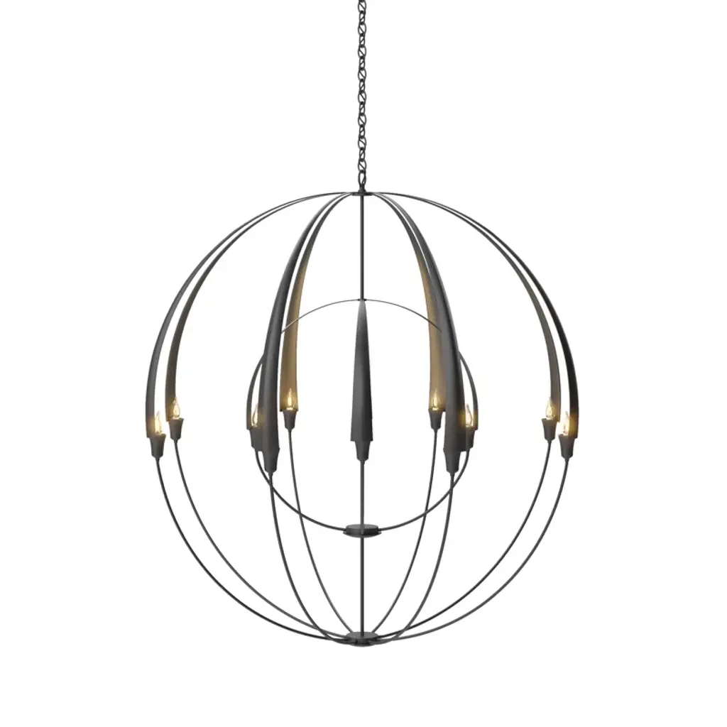 For something truly awe-inspiring, you need to look no further. With a diameter of four feet, it's no stretch to call this Cirque chandelier "large-scale." Six steel circular shapes are hand-forged from 12 tapered steel petals merging at the sculpture's apex. All Hubbardton Forge products are hand-crafted to last one at a time in Vermont.