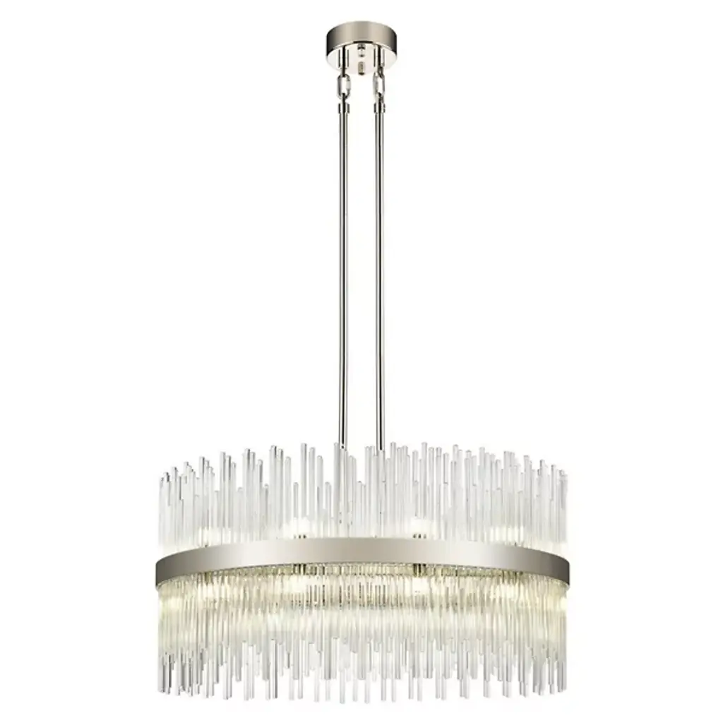 Presented by Zeev Lighting, the Citadel Chandelier features a decadent arrangement of glass and lustrous metalwork to provide instant glamour among locales of choice. Whether displayed as a solo piece or in multiples, the Citadel is a piece of luminous jewelry for spaces serving across the spectrum of work or play.