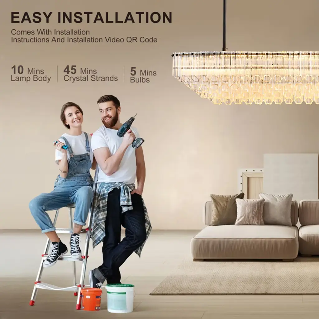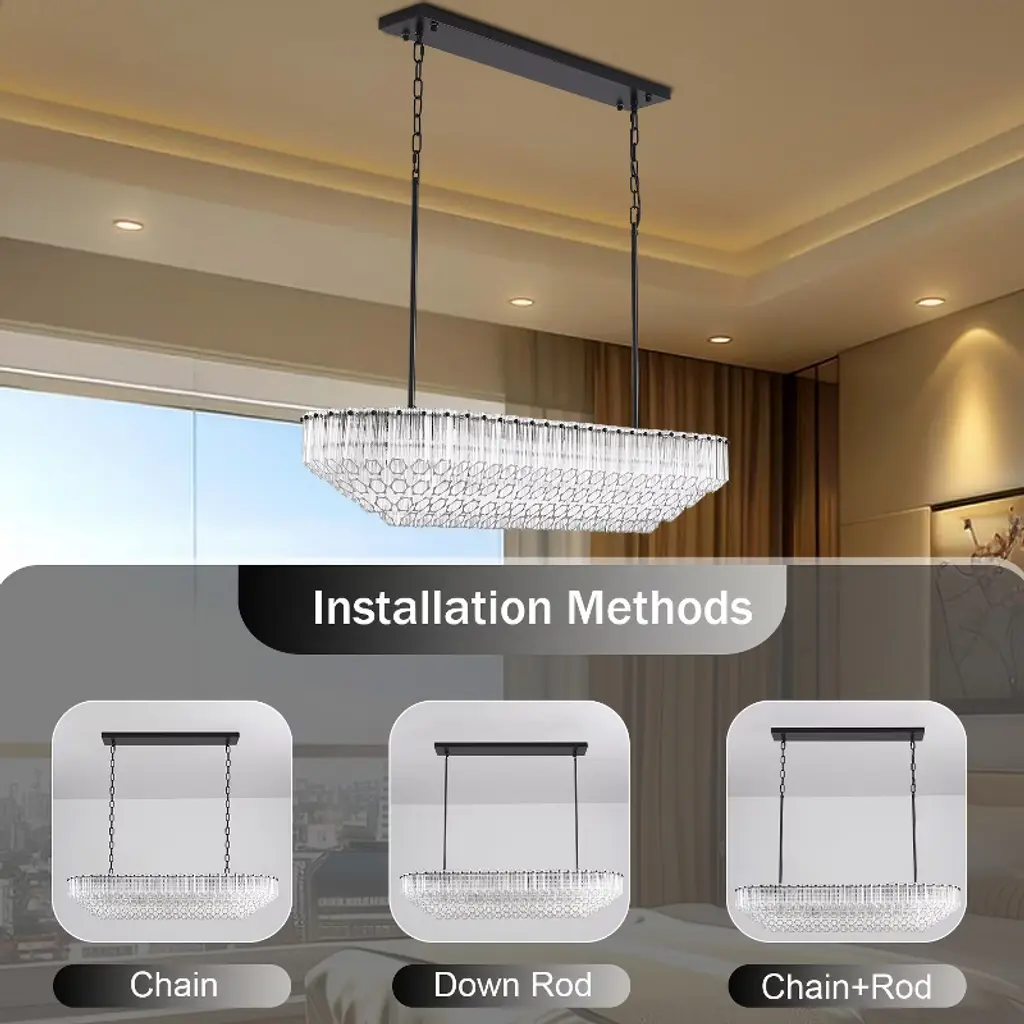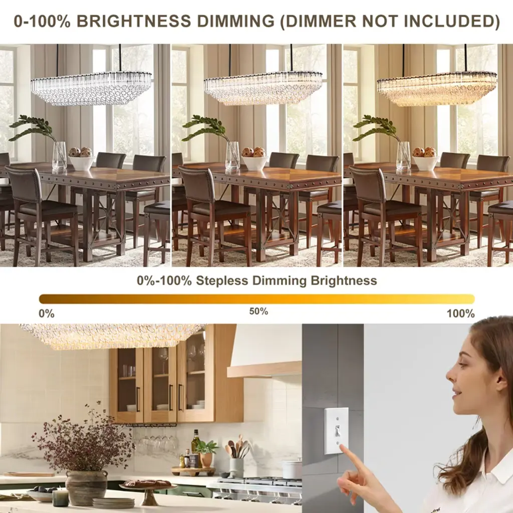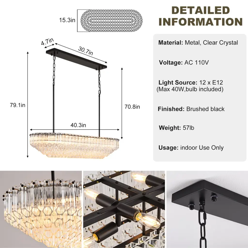 This eye-catching chandelier infuses your space with elegance and seamlessly complements contemporary, luxury, and mid-century home styles. Featuring a rectangular frame with a brushed finish and stunning plum-shaped glass tubes, this 12-light chandelier embodies minimalist aesthetics with a touch of luxury. Suspended beautifully, tried geometric glass, emitting a warm and welcoming glow, creating rich layers and captivating brilliance for your dining room or kitchen island.