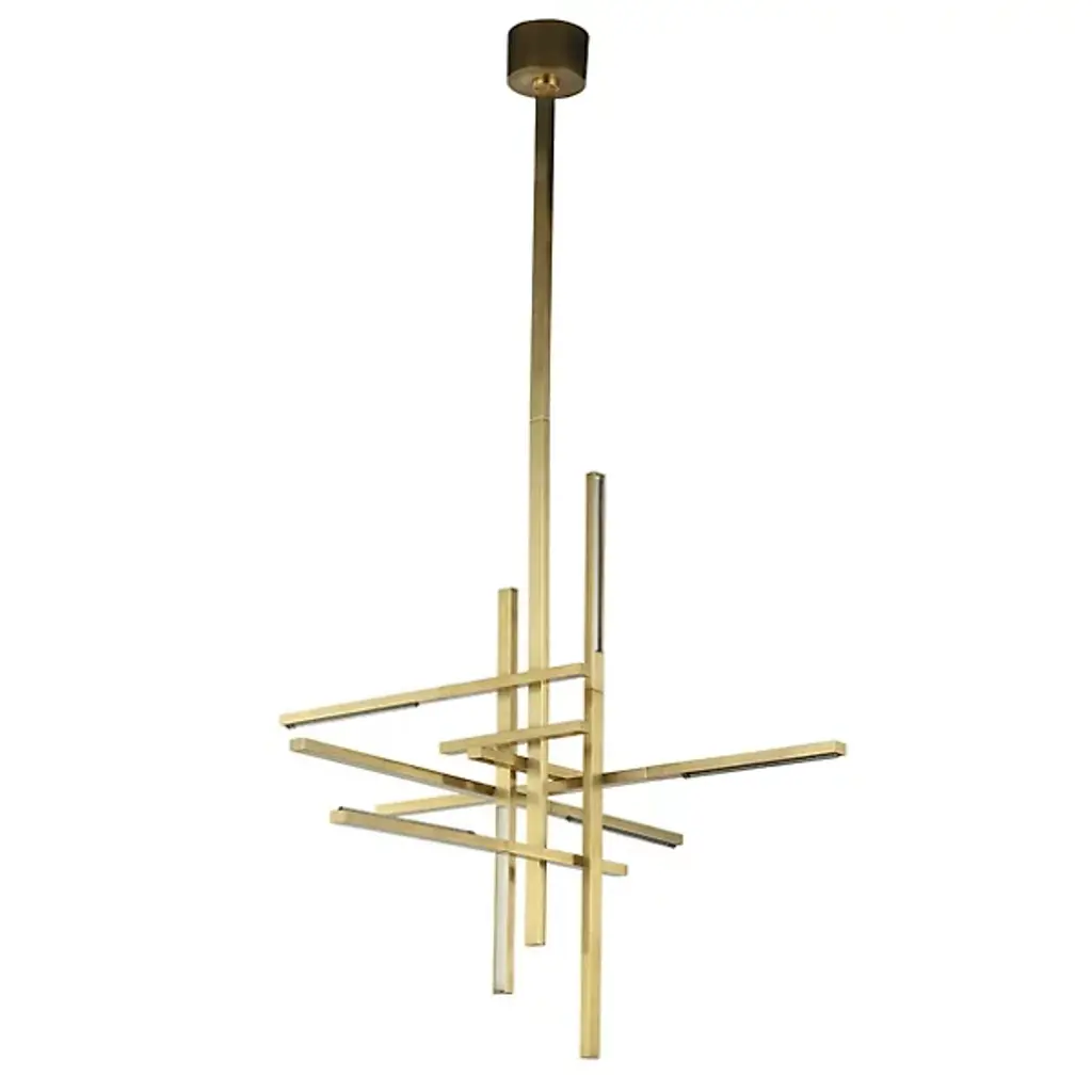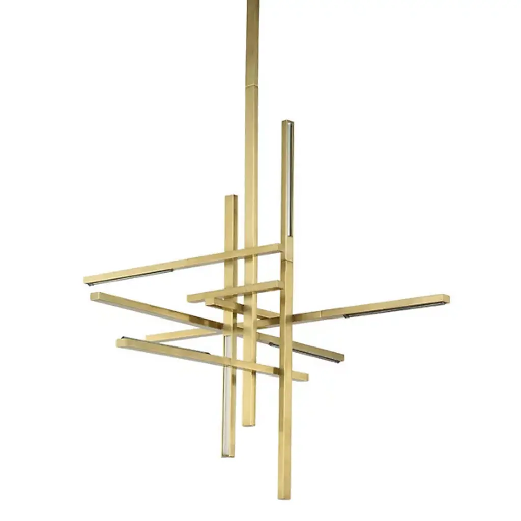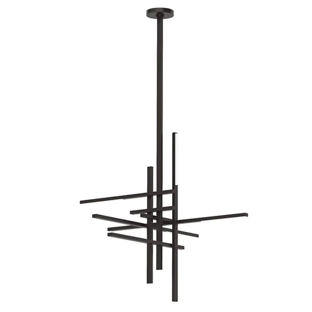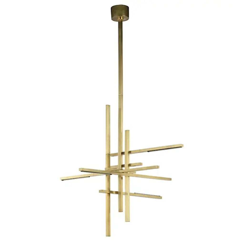 The Cityscape Large LED Chandelier from Visual Comfort Modern features an expertly crafted frame with a stunning geometric design that commands attention. Multiple rods extend from the center, creating dynamic intersections that add visual intrigue to any space. This chandelier, designed by Sean Lavin, combines bold form with practical function, as integrated LED lamping offers a warm, decorative glow. The harmonious blend of its striking design and soft illumination makes it an elegant centerpiece, perfect for enhancing modern interiors.