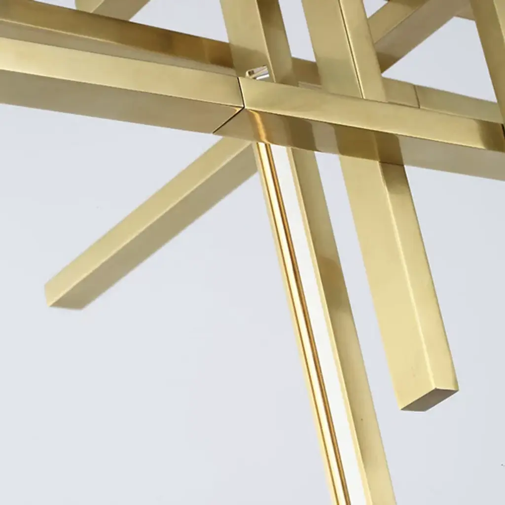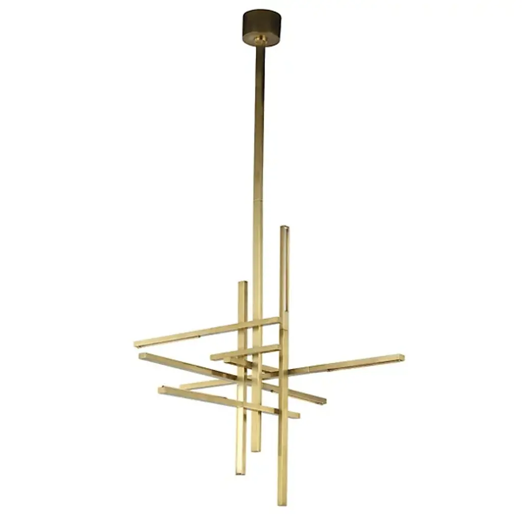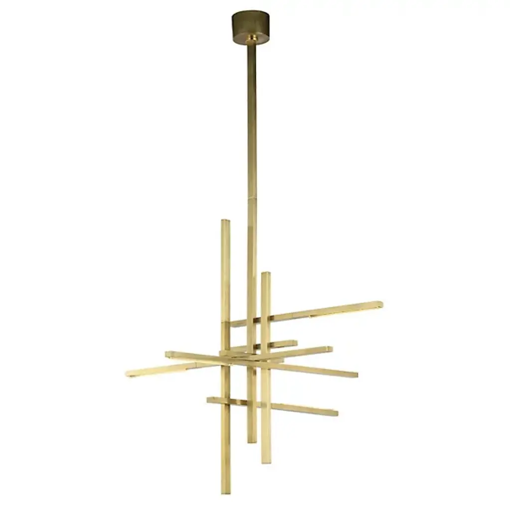 The Cityscape Large LED Chandelier from Visual Comfort Modern features an expertly crafted frame with a stunning geometric design that commands attention. Multiple rods extend from the center, creating dynamic intersections that add visual intrigue to any space. This chandelier, designed by Sean Lavin, combines bold form with practical function, as integrated LED lamping offers a warm, decorative glow. The harmonious blend of its striking design and soft illumination makes it an elegant centerpiece, perfect for enhancing modern interiors.