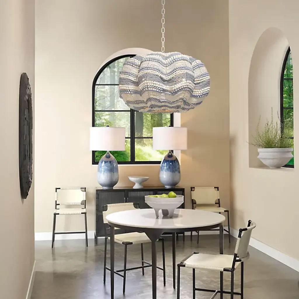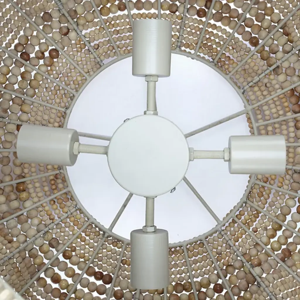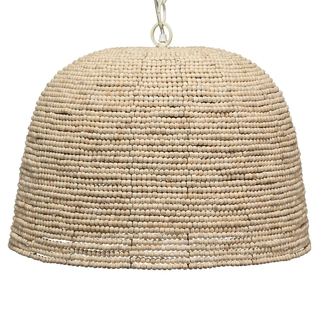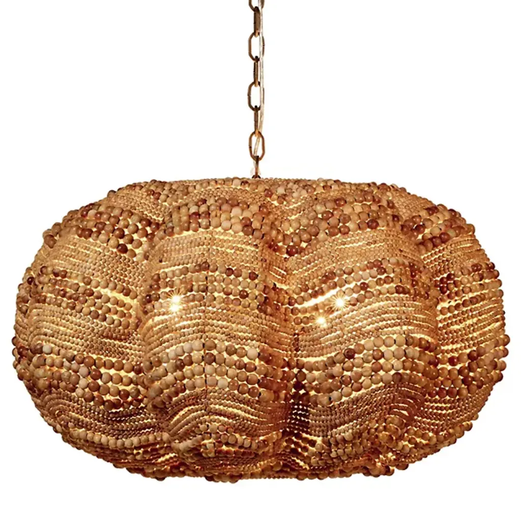 Transform casual interiors with the captivating Clamshell Chandelier from Jamie Young Co., offering a delightful blend of upscale whimsy and engaging sophistication. With a shade hand-carved from mango wood, featuring hundreds of small beads meticulously threaded and arranged in mesmerizing patterns reminiscent of the sun's rays, it expresses a playful yet elegant touch to any space. Intricately crafted with attention to detail, in even its smallest elements, this pendant features a transitional style that complements various interior decor styles, creating versatile and eye-catching character sure to liven up living areas, entryways, and more.