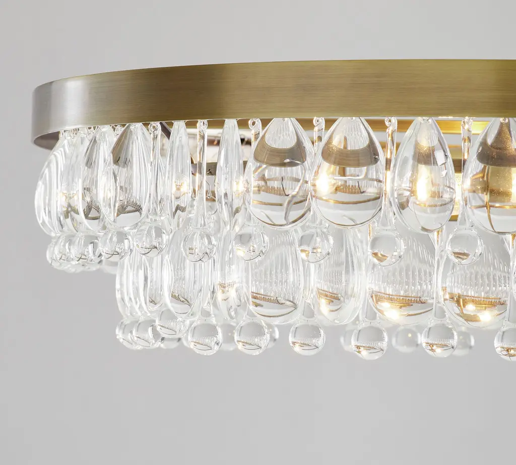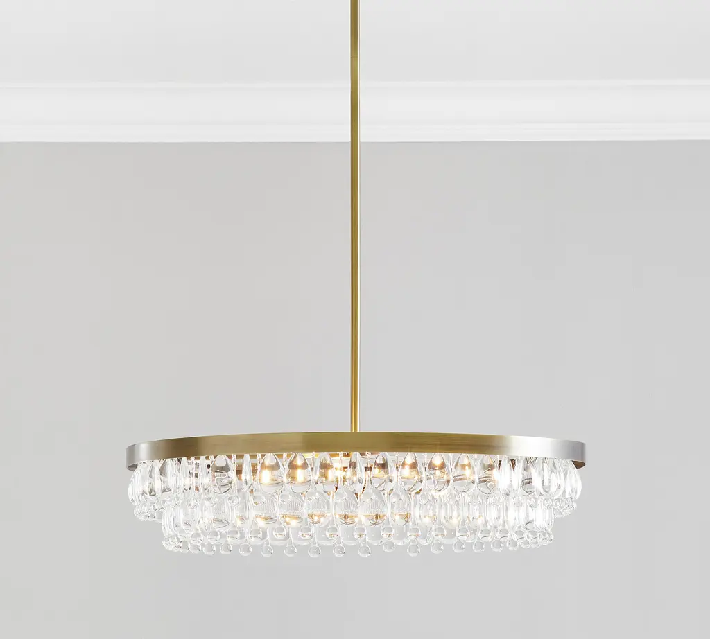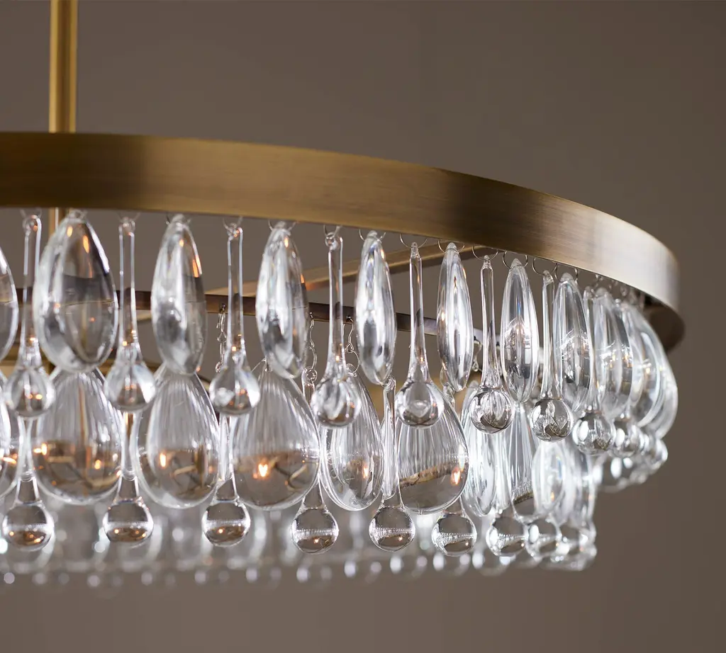 A fresh take on our classic Clarissa Collection, this updated version offers versatile appeal with new finishes and clean-lined forms. The chandelier’s sleek, spherical frame is draped with dozens of crystal droplets in alternating tear- and rain-drop shapes for pure drama, providing the perfect complement to contemporary and traditional settings alike.