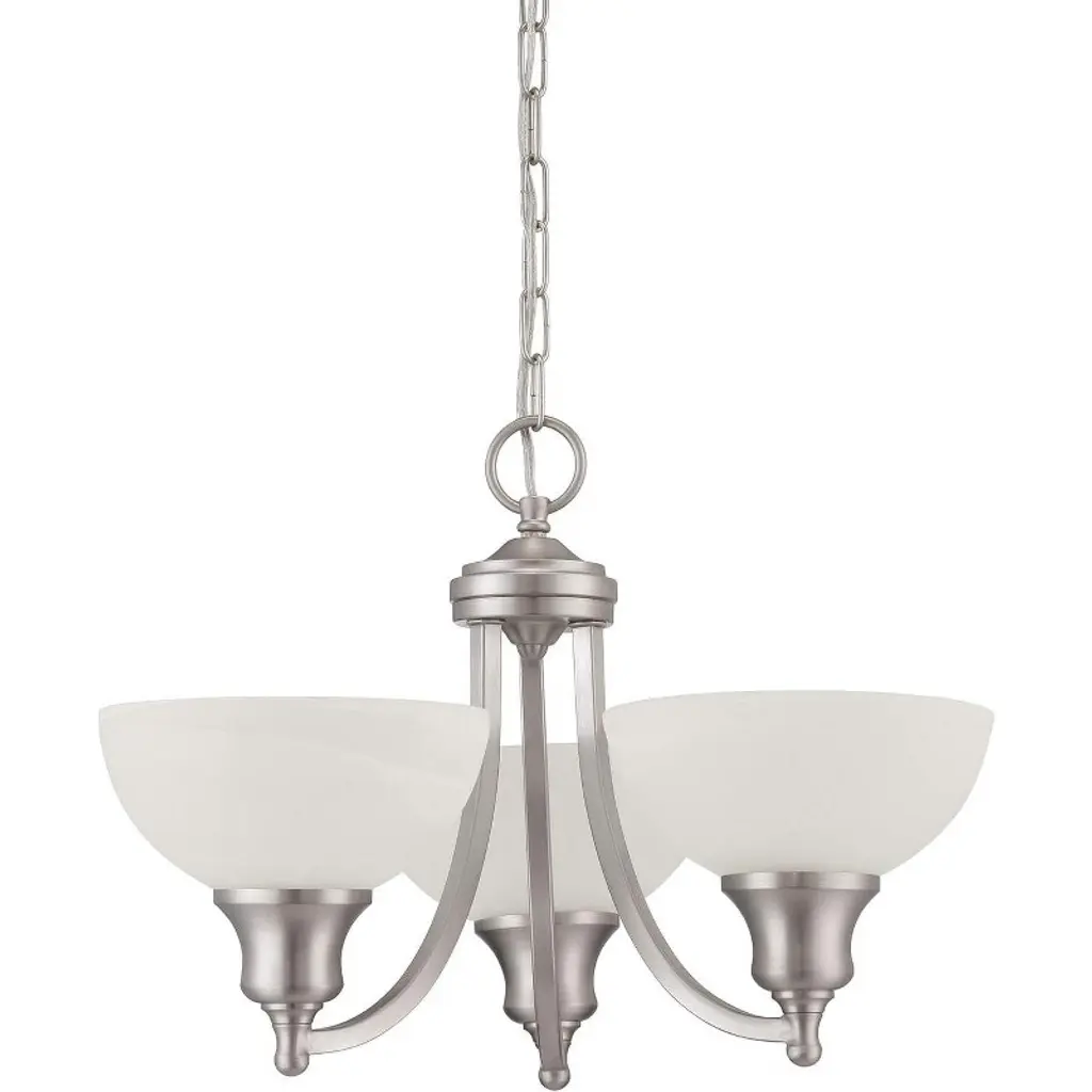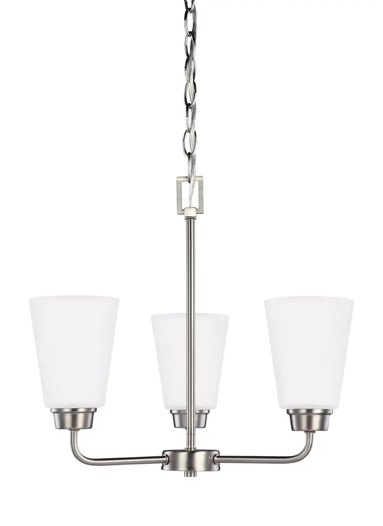 Traditional details and graceful lines provide modern elegance to any interior. The Classic three-light chandelier features etched glass shades with a Polished Chrome finish.