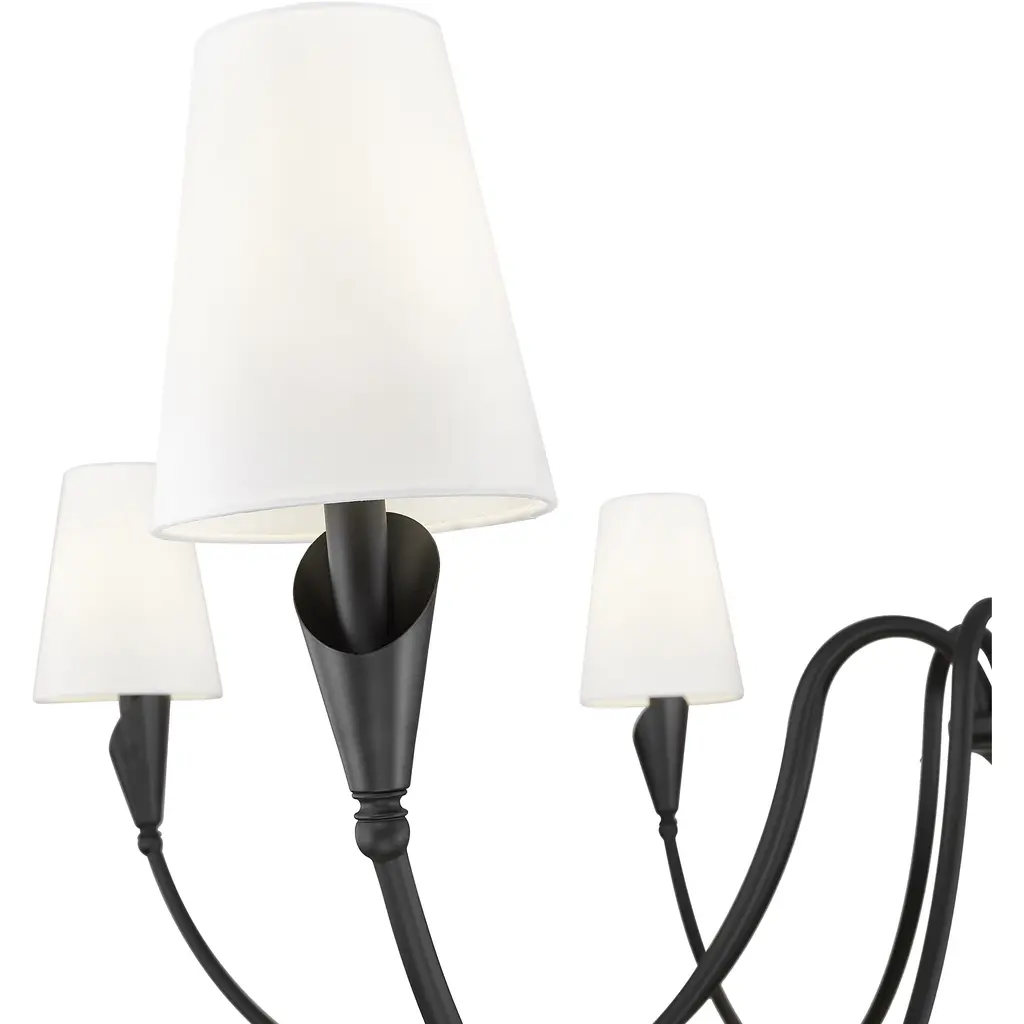 Expansive but never overwhelming, this eight-light chandelier spreads warmth and grace across the ceiling. Its matte black frame offers grounding structure, while linen shades add texture and lightness. Its a stunning choice for large dining spaces, vaulted entries, or open concept living.