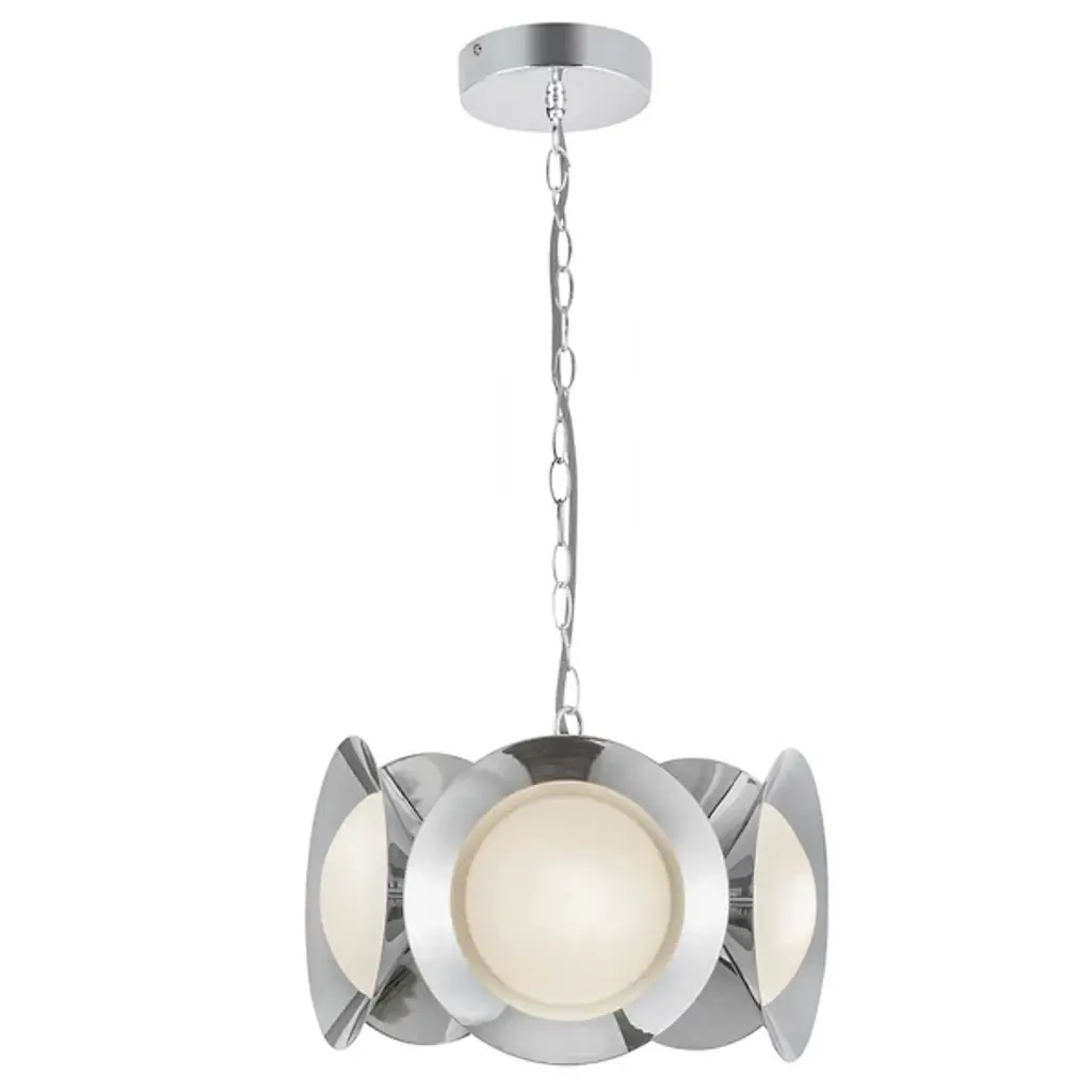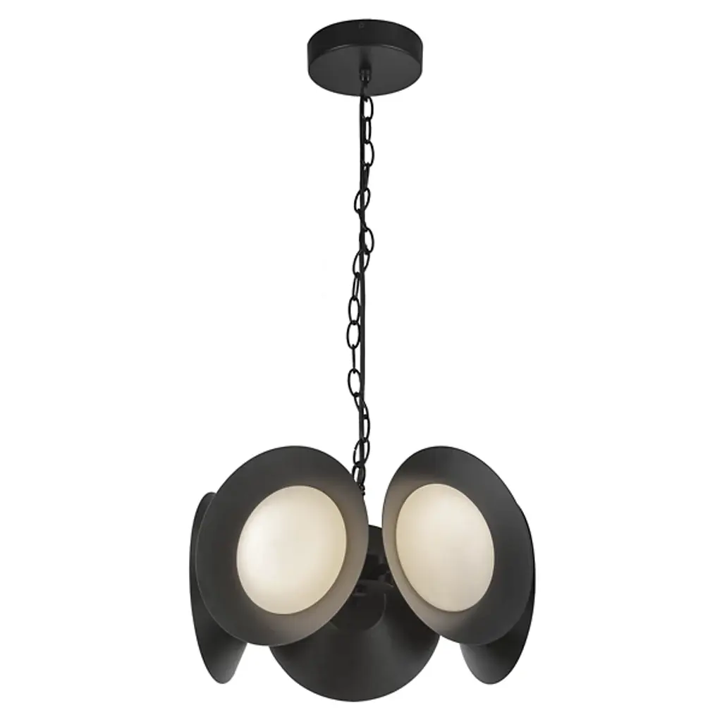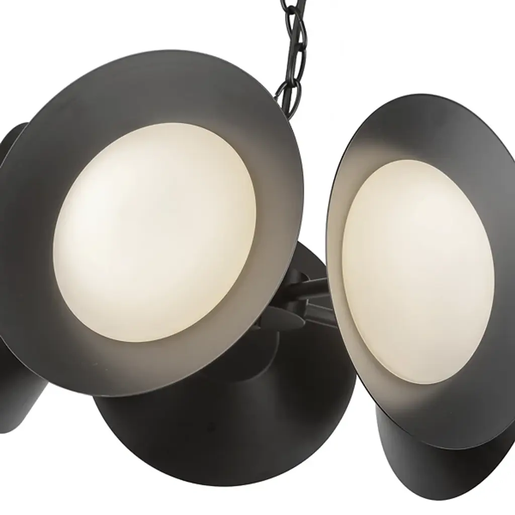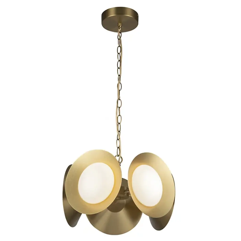The Cleo LED Chandelier from Kuzco Lighting centers oversized opal diffusers within circular disc shades for a design that catches the eye immediately. Designer Peyton Fox created this fixture with omnidirectional illumination, perfect for dining rooms, living rooms, and foyers. The wire-hung composition pairs steel and glass elements in a minimalist approach that works in multiple interior contexts. Sloped ceiling adaptable, this LED fixture requires no bulbs and reduces energy waste through integrated illumination. Simple yet refined, the Cleo LED Chandelier makes a statement, allowing your personal style to shine alongside its gentle, diffused light.