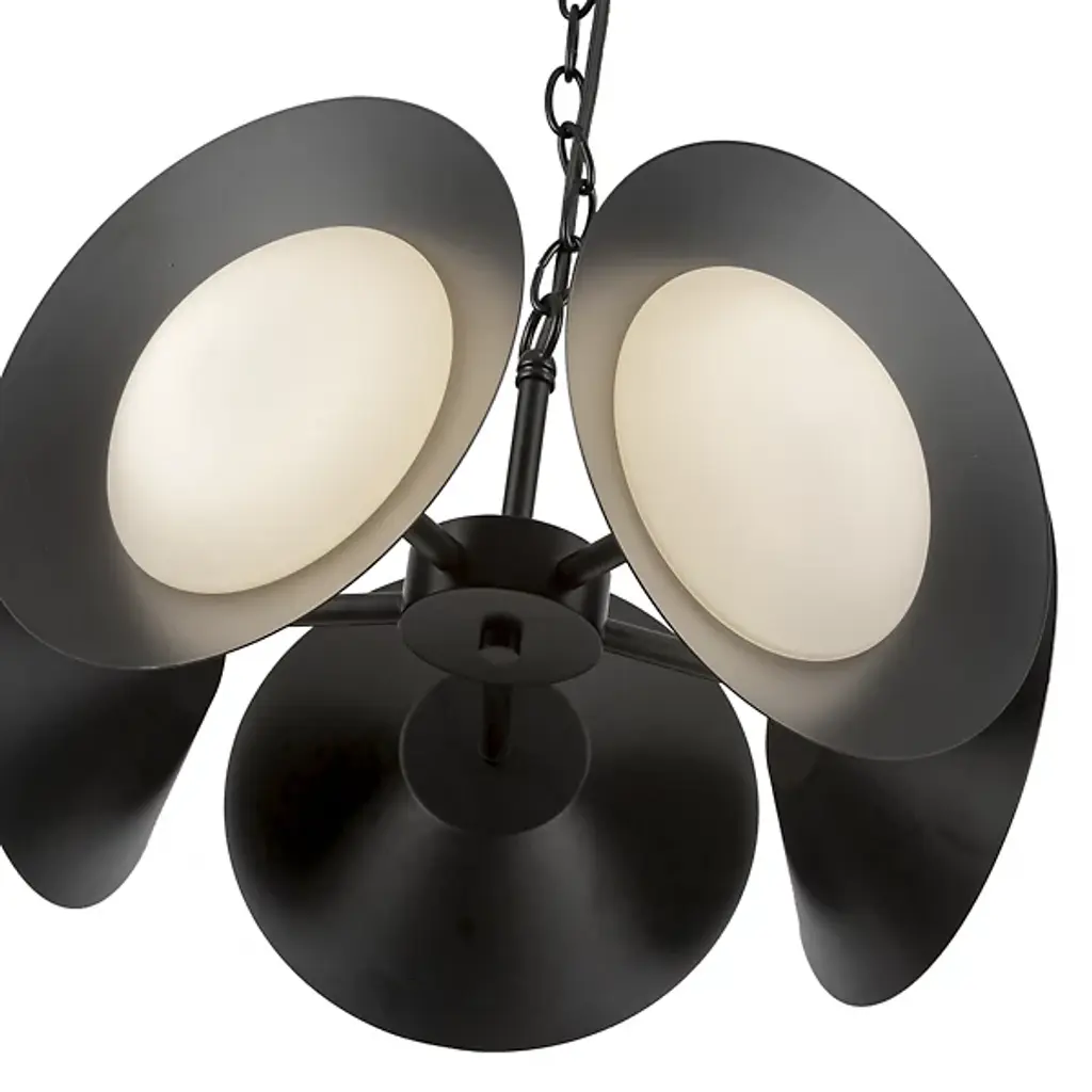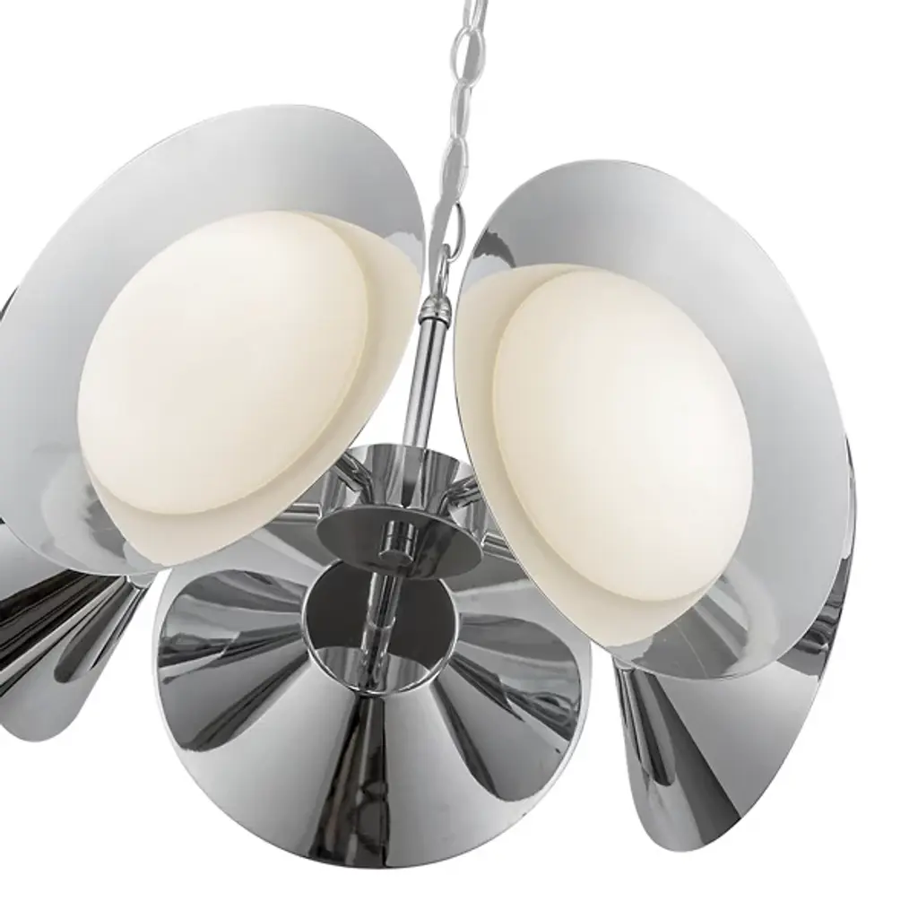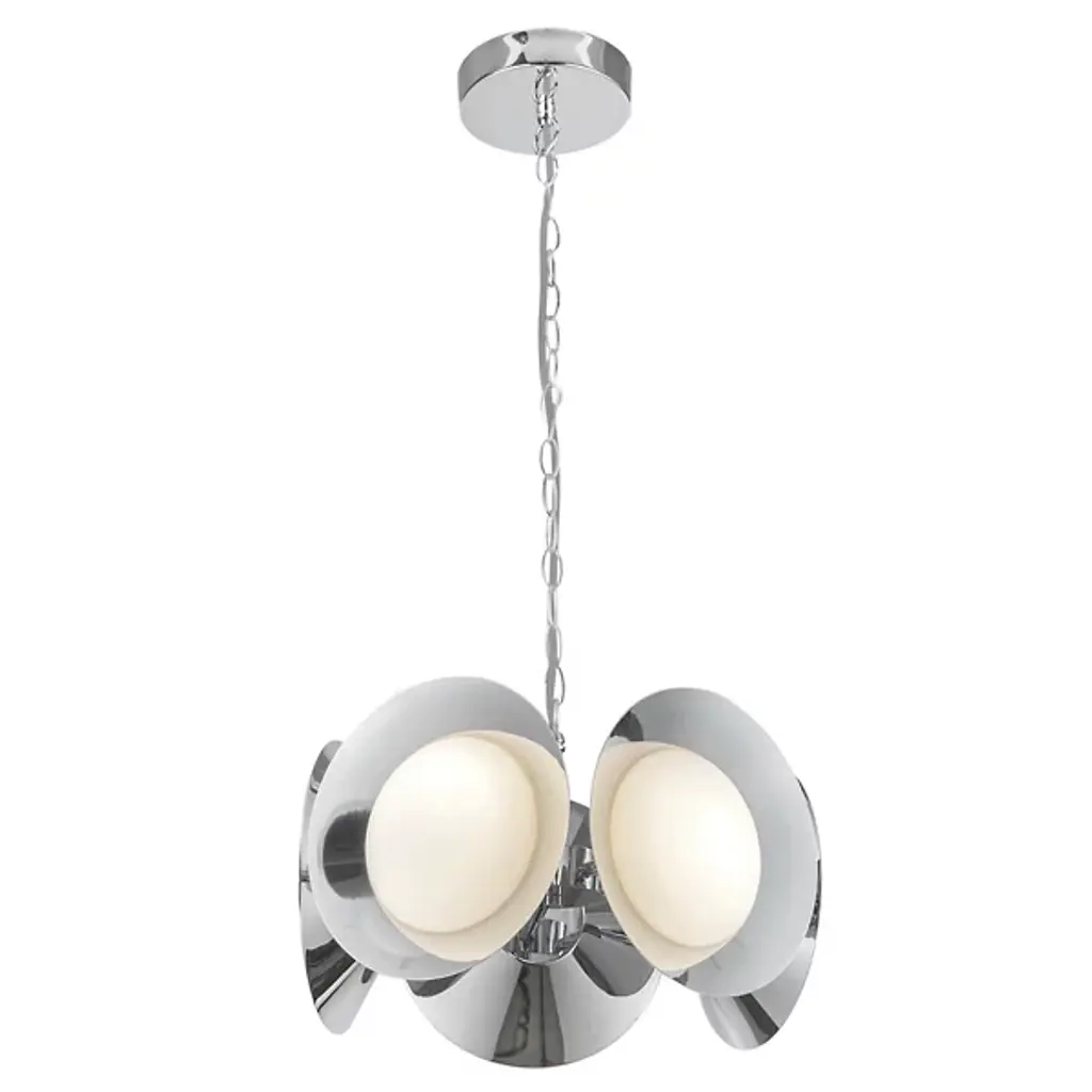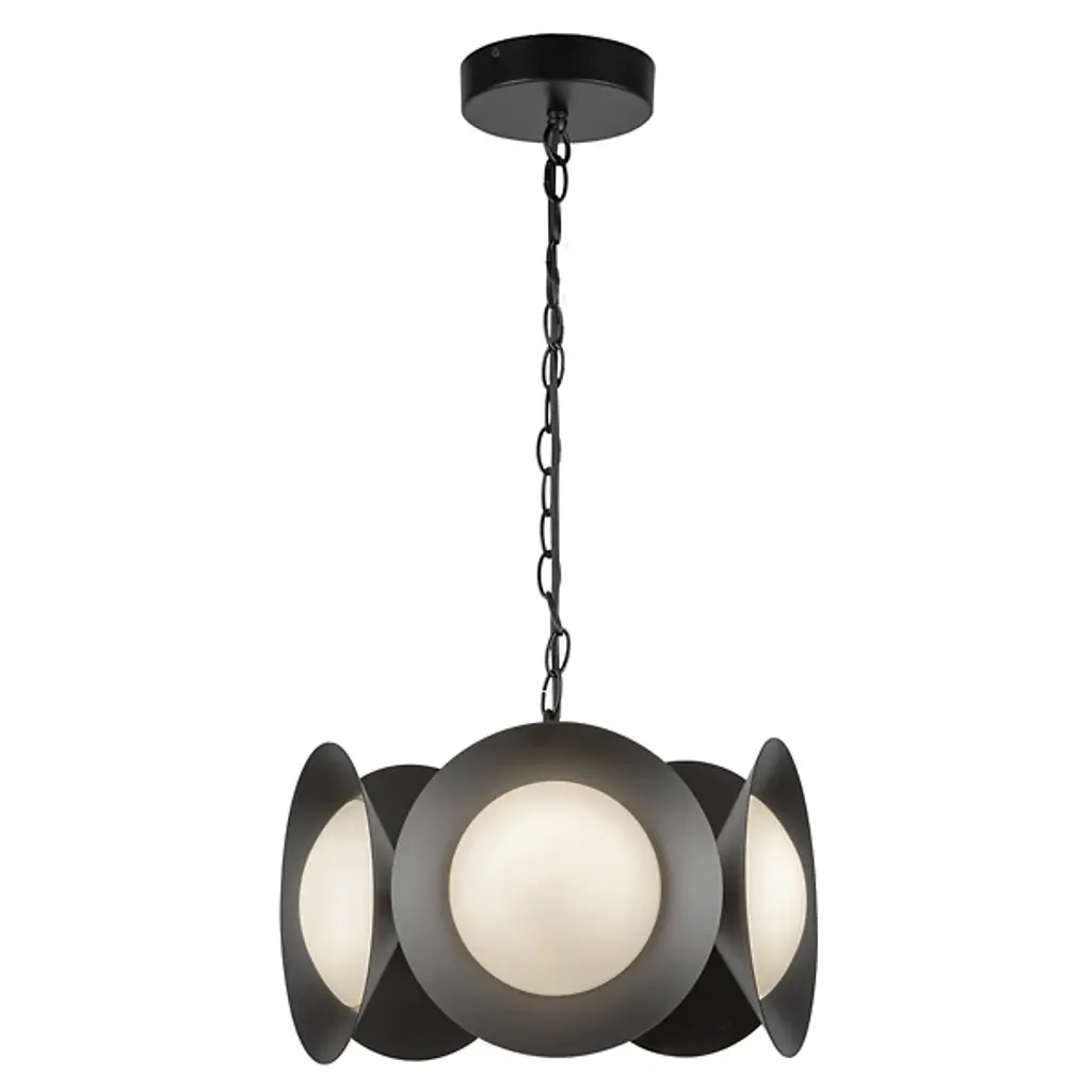 The Cleo LED Chandelier from Kuzco Lighting centers oversized opal diffusers within circular disc shades for a design that catches the eye immediately. Designer Peyton Fox created this fixture with omnidirectional illumination, perfect for dining rooms, living rooms, and foyers. The wire-hung composition pairs steel and glass elements in a minimalist approach that works in multiple interior contexts. Sloped ceiling adaptable, this LED fixture requires no bulbs and reduces energy waste through integrated illumination. Simple yet refined, the Cleo LED Chandelier makes a statement, allowing your personal style to shine alongside its gentle, diffused light.
