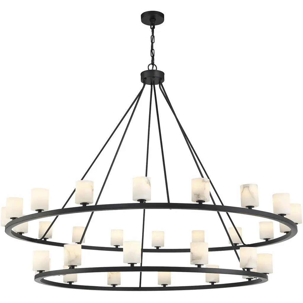 Clouds™ Collection - Dakota 15-Light 1-Tier Ring Chandelier - Cylinder w/ Flat Rim Shade - Matte Black - Clouds - E26