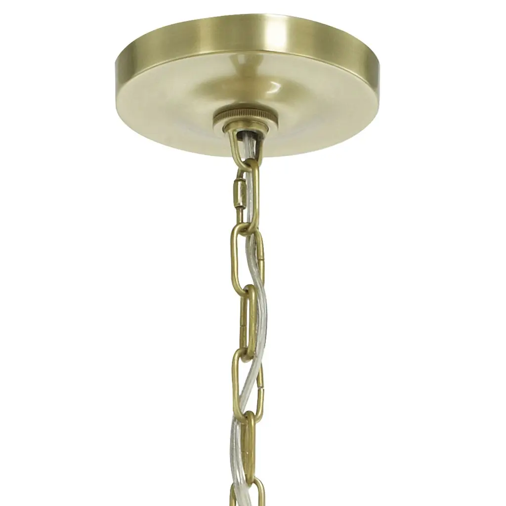 This glamorous chandelier glimmers with scores of clear glass spheres descending from the aged brass-finished fixture. Hardwired.