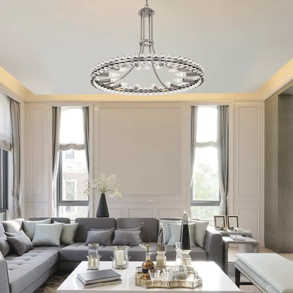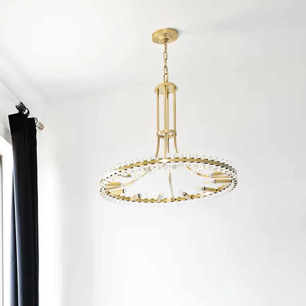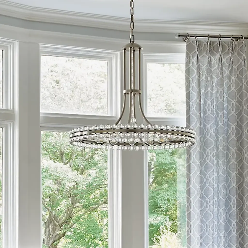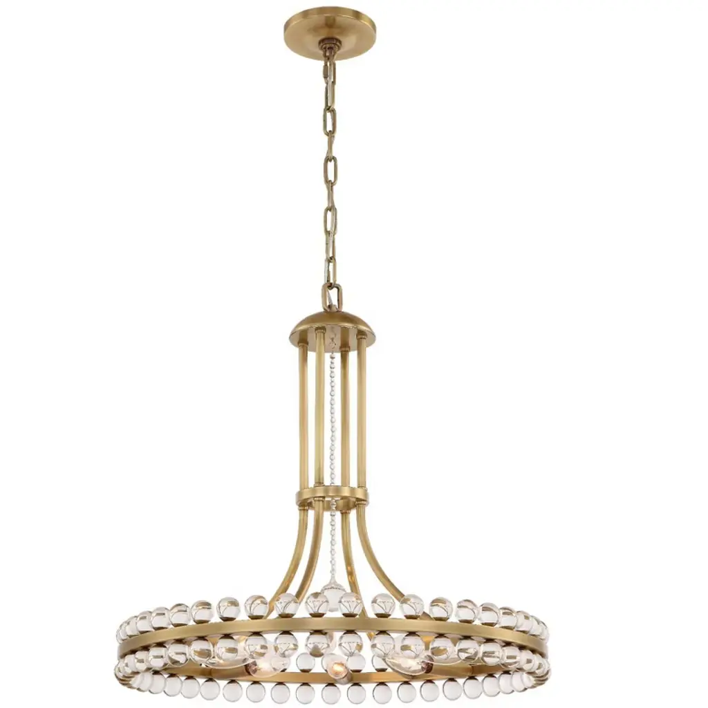Elegant simplicity reaches peak perfection. The Clover Chandelier by Crystorama exudes class from every detail, showcasing gorgeous steel and glass sphere elements that allow the candelabra bulbs (not included) to illuminate a dining space or living room in a sophisticated manner. Multiple traditional-style finishes are also available, allowing design enthusiasts to establish a motif that corresponds to their discerning tastes.
