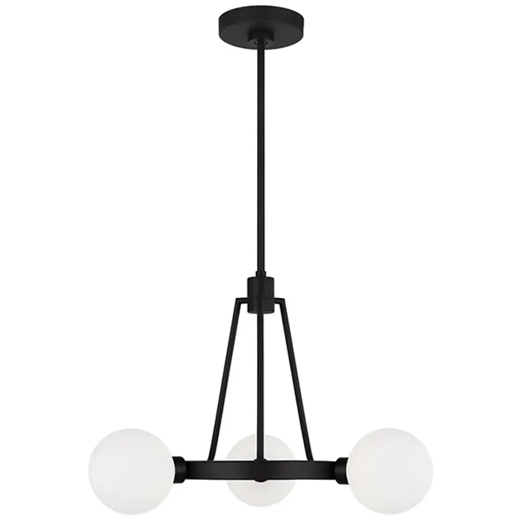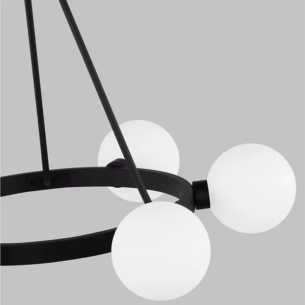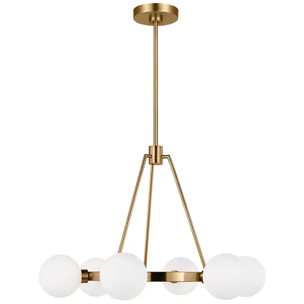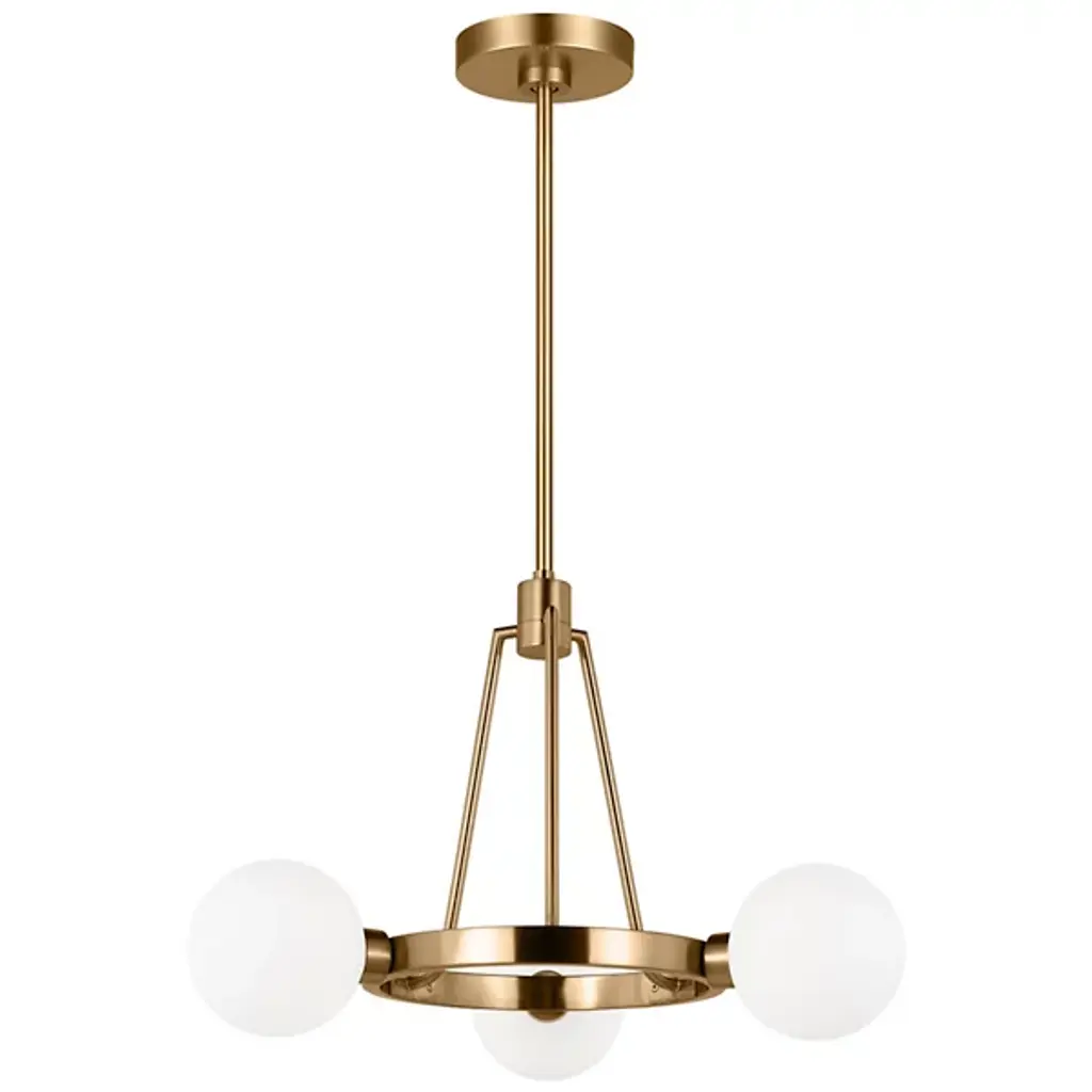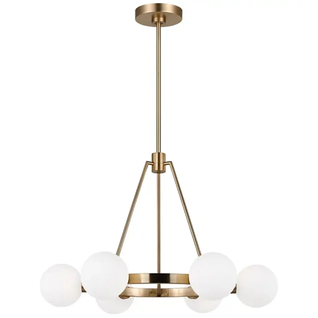 Boasting bold globes of milk glass and contrasting finishes, the Clybourn Chandelier from Visual Comfort Studio, formerly known as Sea Gull Lighting, exhibits a mixture of drama, elegance, and fun. It features a three-light single-tier chandelier for an industrial yet minimalist design, making this fixture perfect for an eclectic living room or over a modern dining room table. Milk glass gives this fixture a more current look.