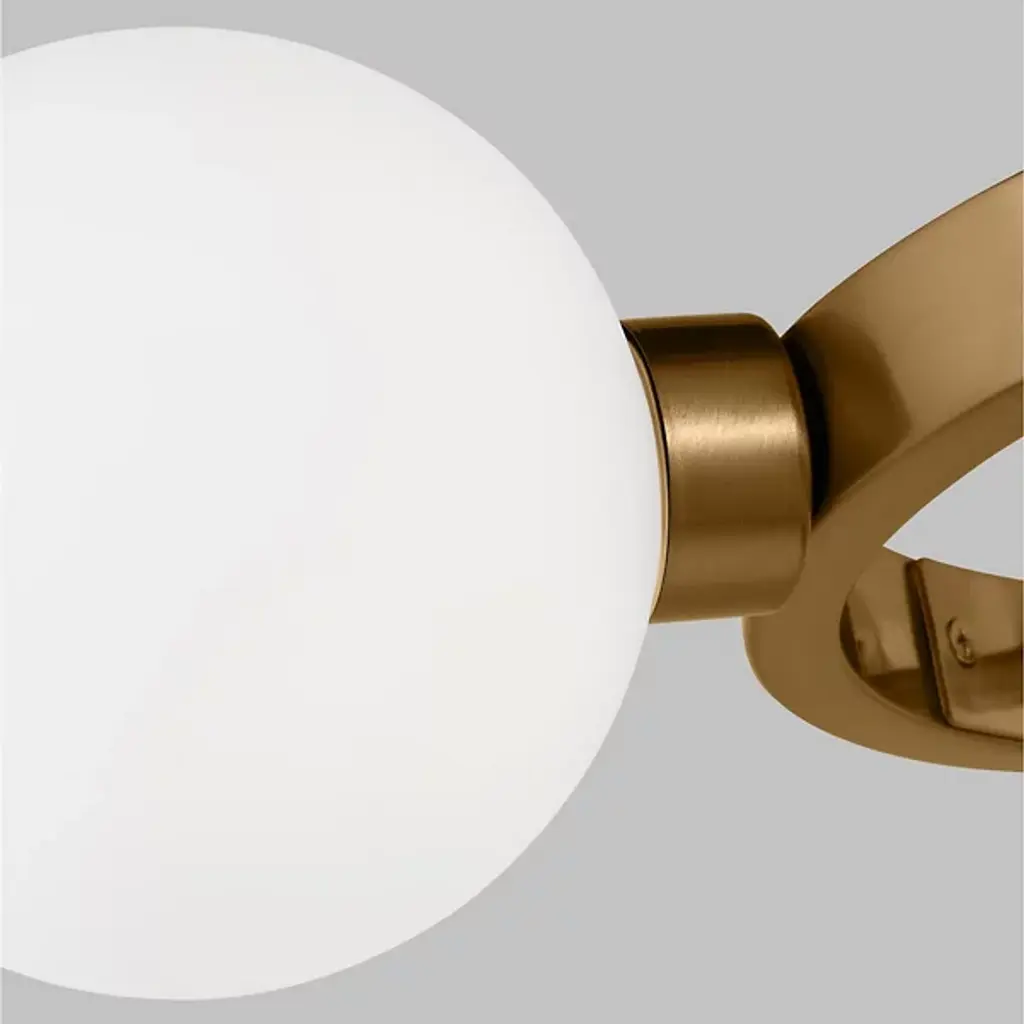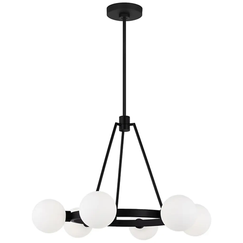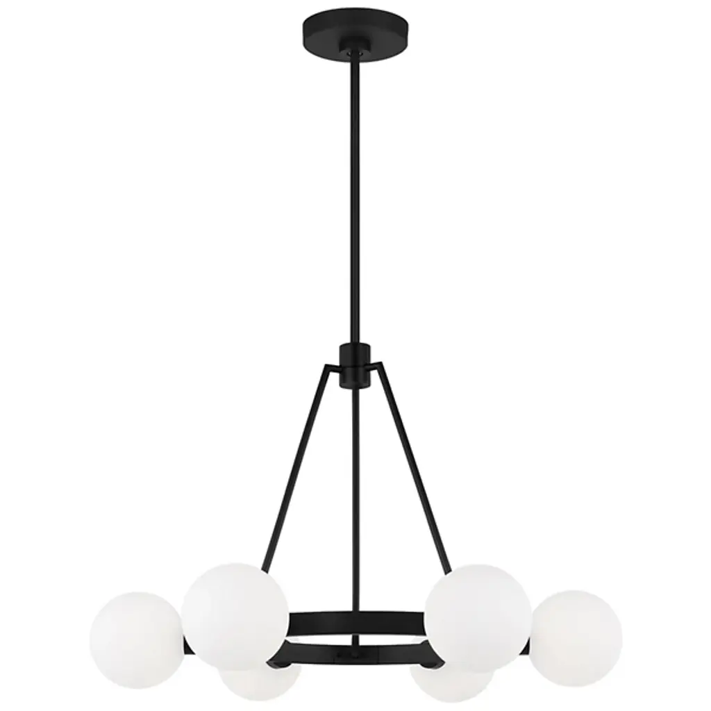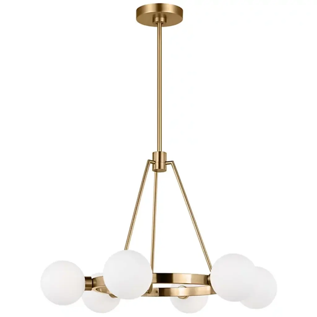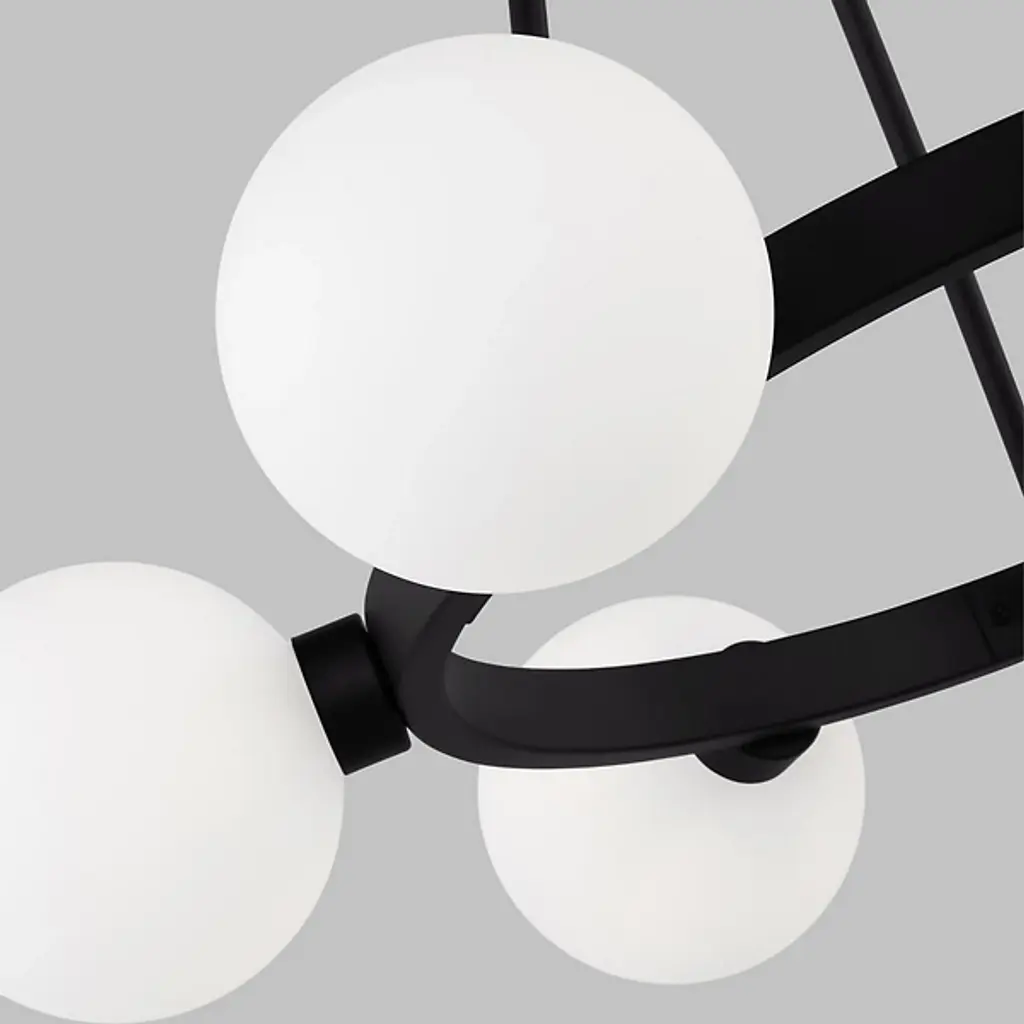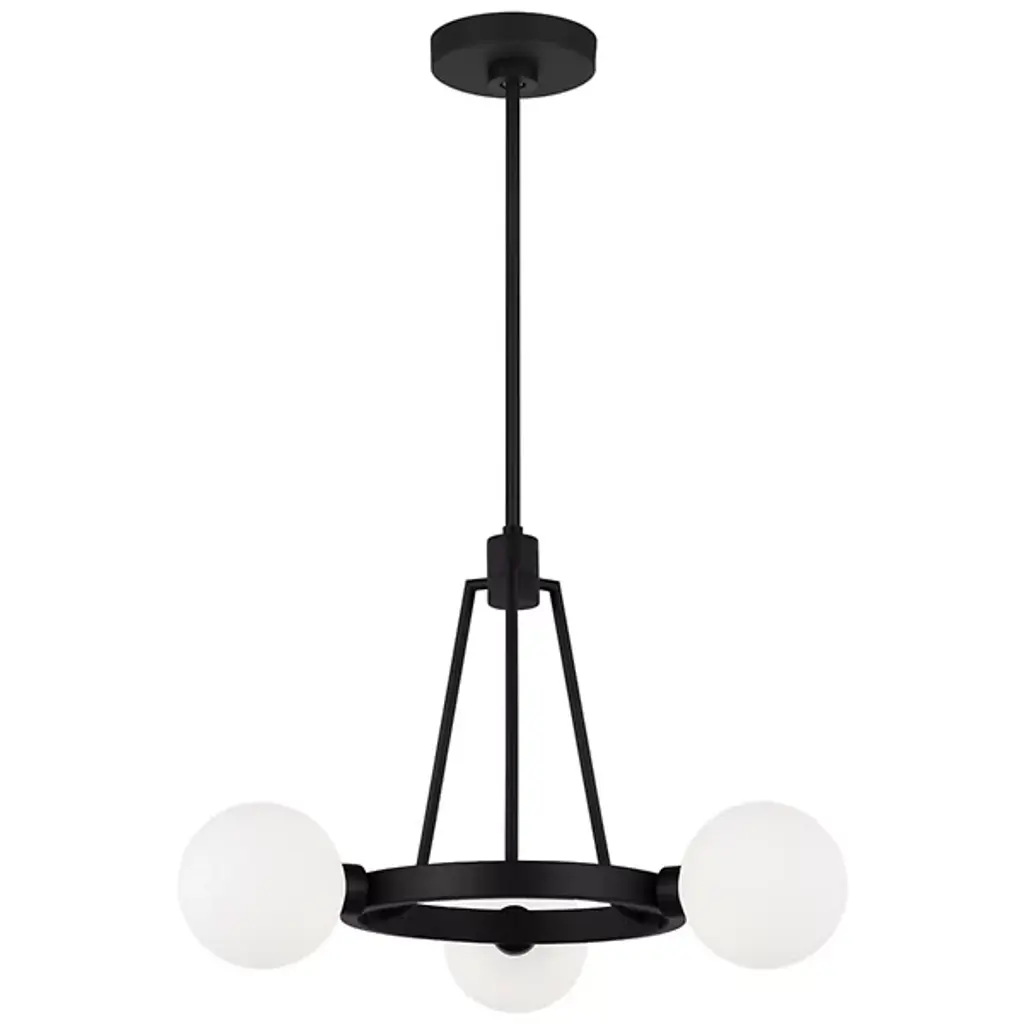 Boasting bold globes of milk glass and contrasting finishes, the Clybourn Chandelier from Visual Comfort Studio, formerly known as Sea Gull Lighting, exhibits a mixture of drama, elegance, and fun. It features a three-light single-tier chandelier for an industrial yet minimalist design, making this fixture perfect for an eclectic living room or over a modern dining room table. Milk glass gives this fixture a more current look.