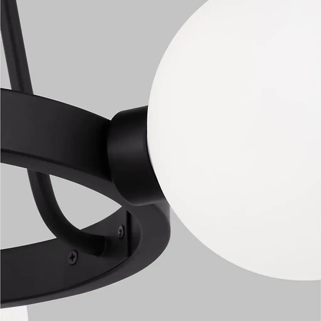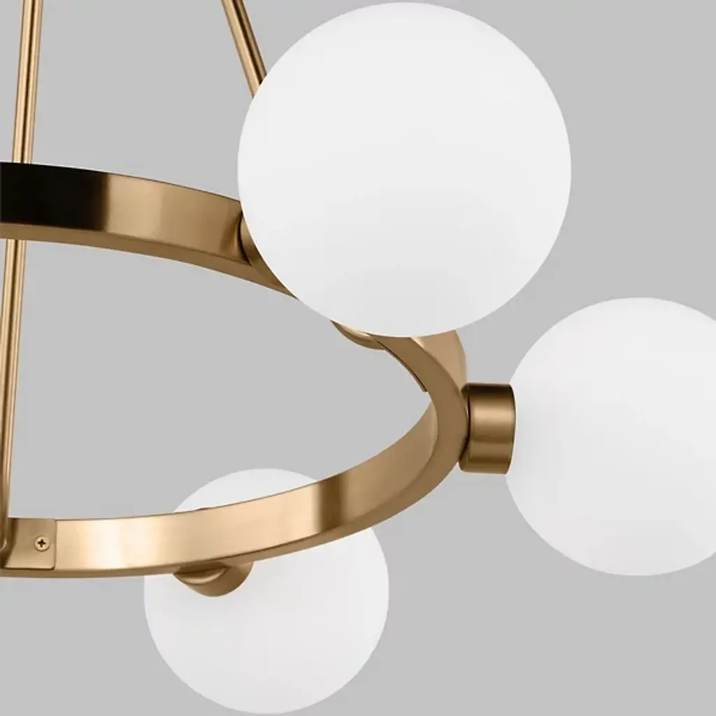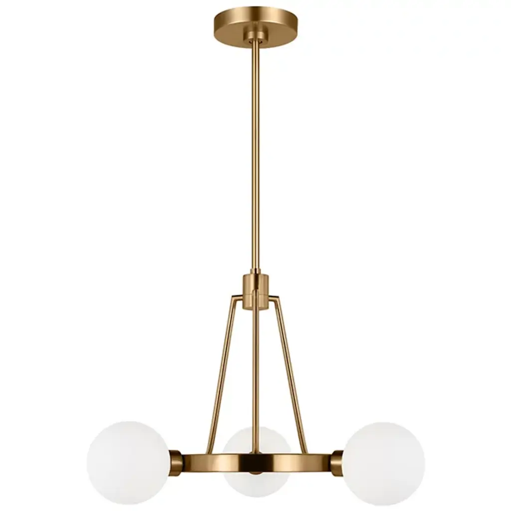 Boasting bold globes of milk glass and contrasting finishes, the Clybourn Chandelier from Visual Comfort Studio, formerly known as Sea Gull Lighting, exhibits a mixture of drama, elegance, and fun. It features a three-light single-tier chandelier for an industrial yet minimalist design, making this fixture perfect for an eclectic living room or over a modern dining room table. Milk glass gives this fixture a more current look.