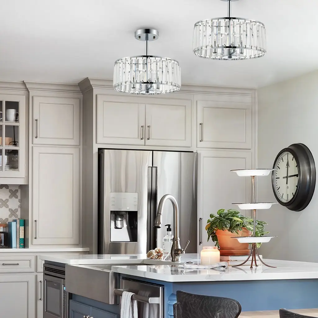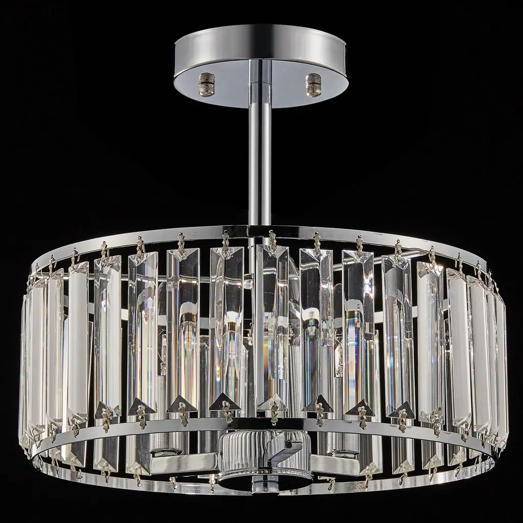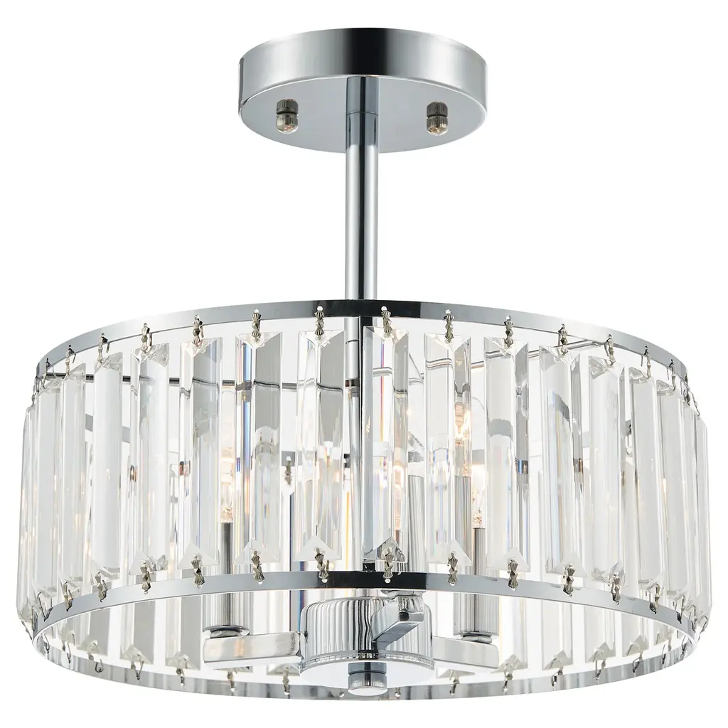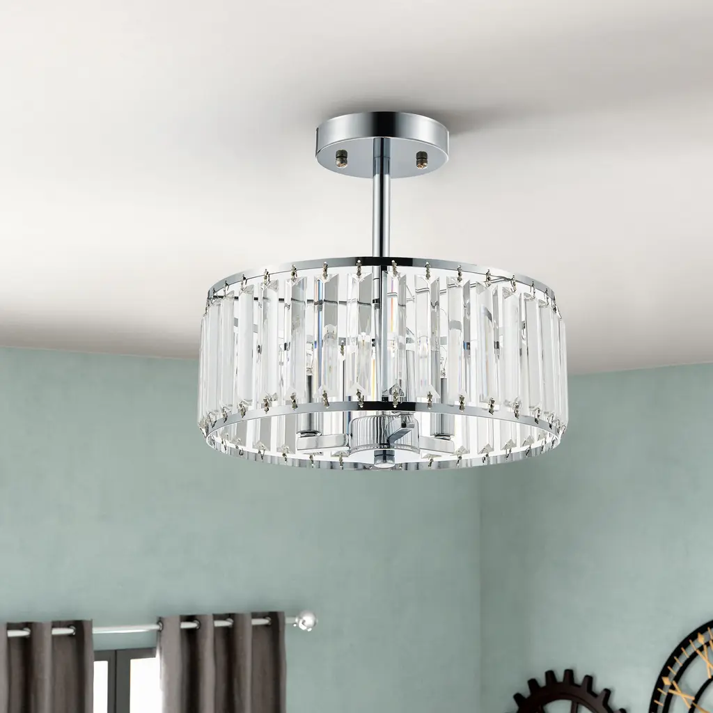 Co-Z 12" Modern 3-Light Crystal Semi Flush Mount Chandelier With Drum Shade - Chrome
