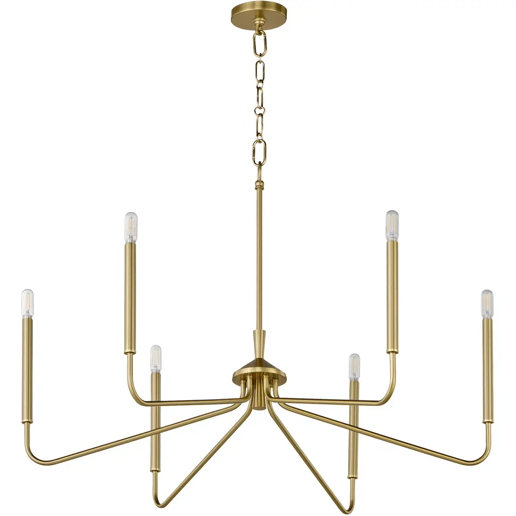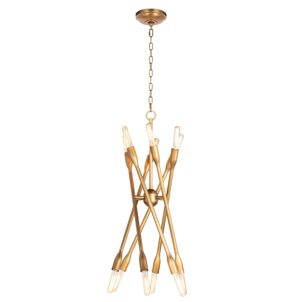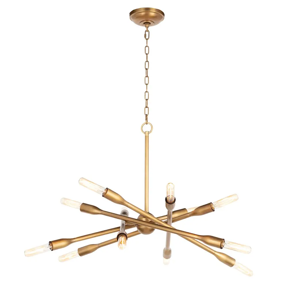 Modern metal arms crisscross in the air, meeting at different angles to make up this striking chandelier. The sleek design brings a vintage vibe to the intentionally random design of the piece and the size adds to its versatility, making a grand statement for living and dining rooms, entryways, or any space where serious design impact is needed. Try this fixture with Vintage T Bulbs for an impactful silhouette.