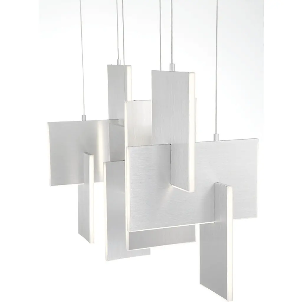 Slim, edge-lit LED panels are creatively positioned to intersect in a dynamic, whimsically modern design. A continuous run of LED lights delivers seamless, multi-directional lighting. The interlocking aluminum panels are laser cut for added precision and anodized to create a durable, corrosion-resistant finish thats available in either gold or black.