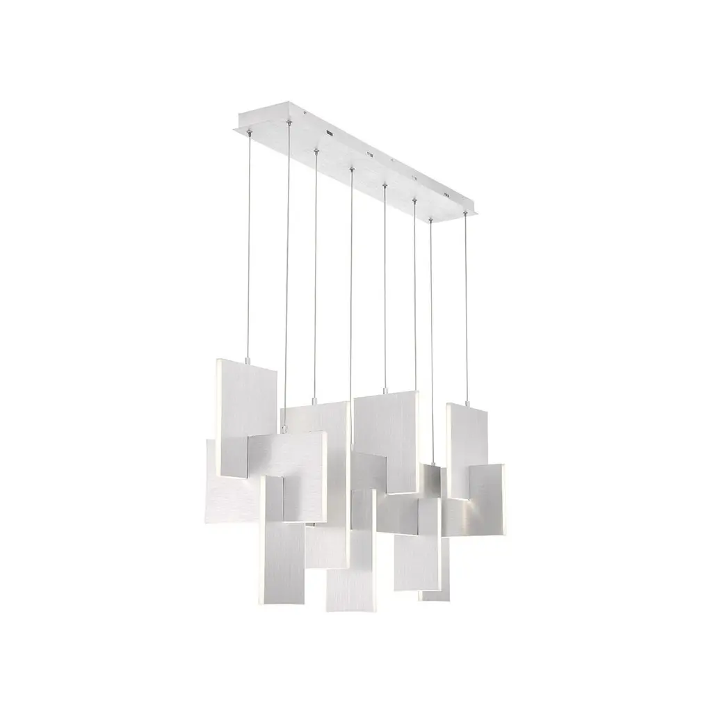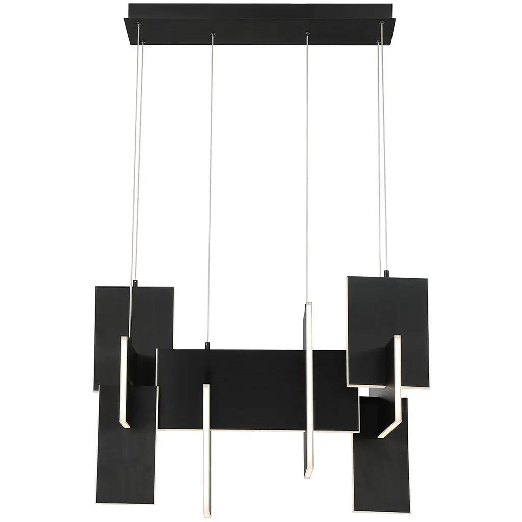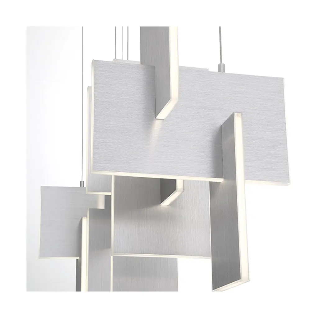 Slim, edge-lit LED panels are creatively positioned to intersect in a dynamic, whimsically modern design. A continuous run of LED lights delivers seamless, multi-directional lighting. The interlocking aluminum panels are laser cut for added precision and anodized to create a durable, corrosion-resistant finish thats available in either gold or black.