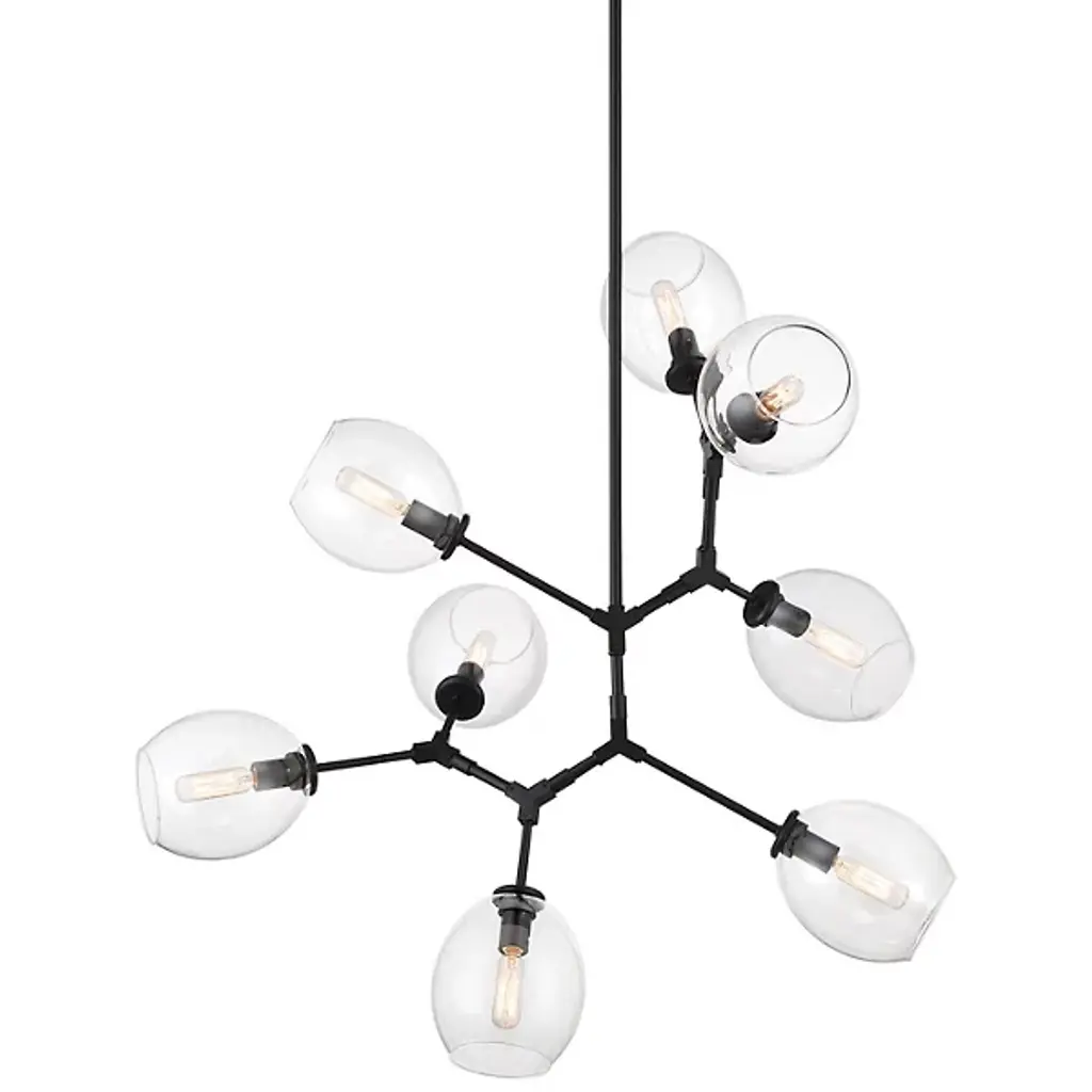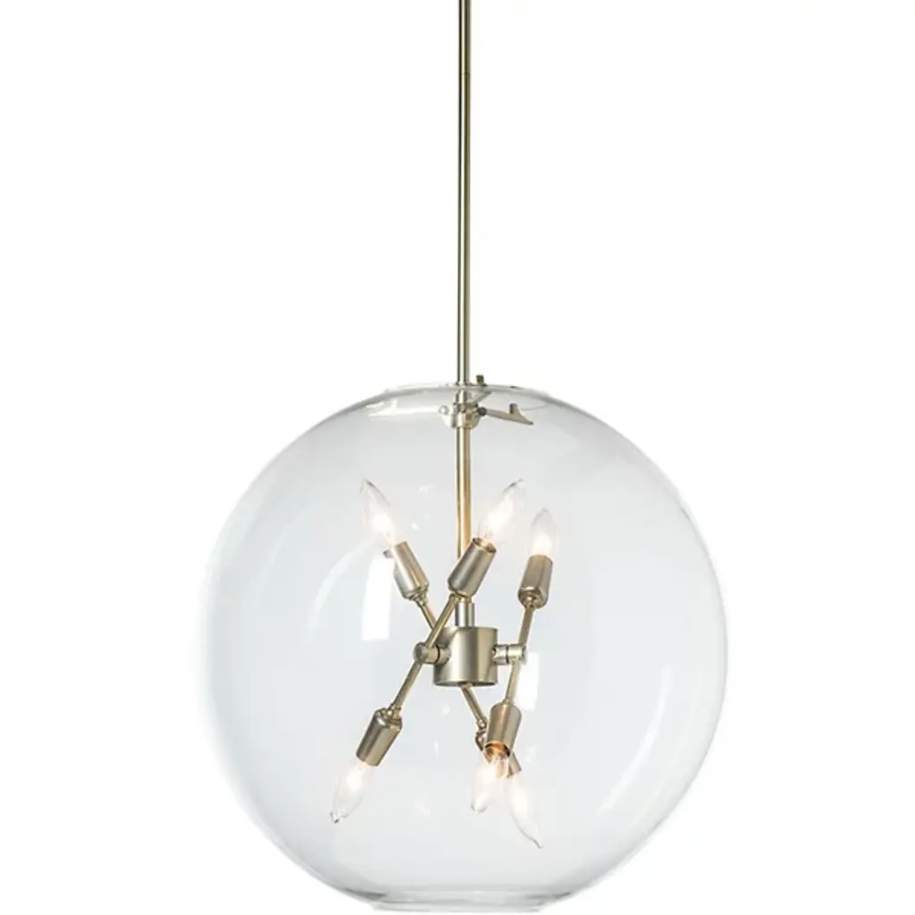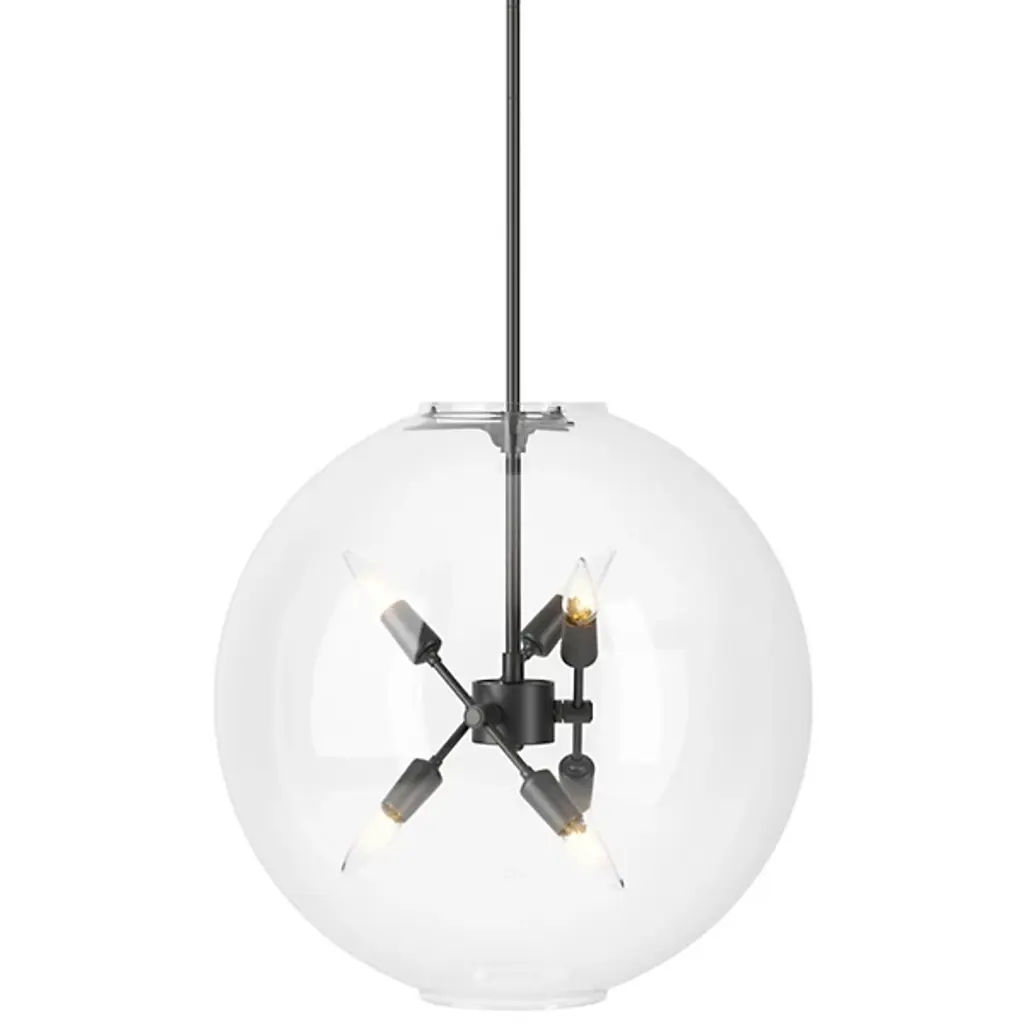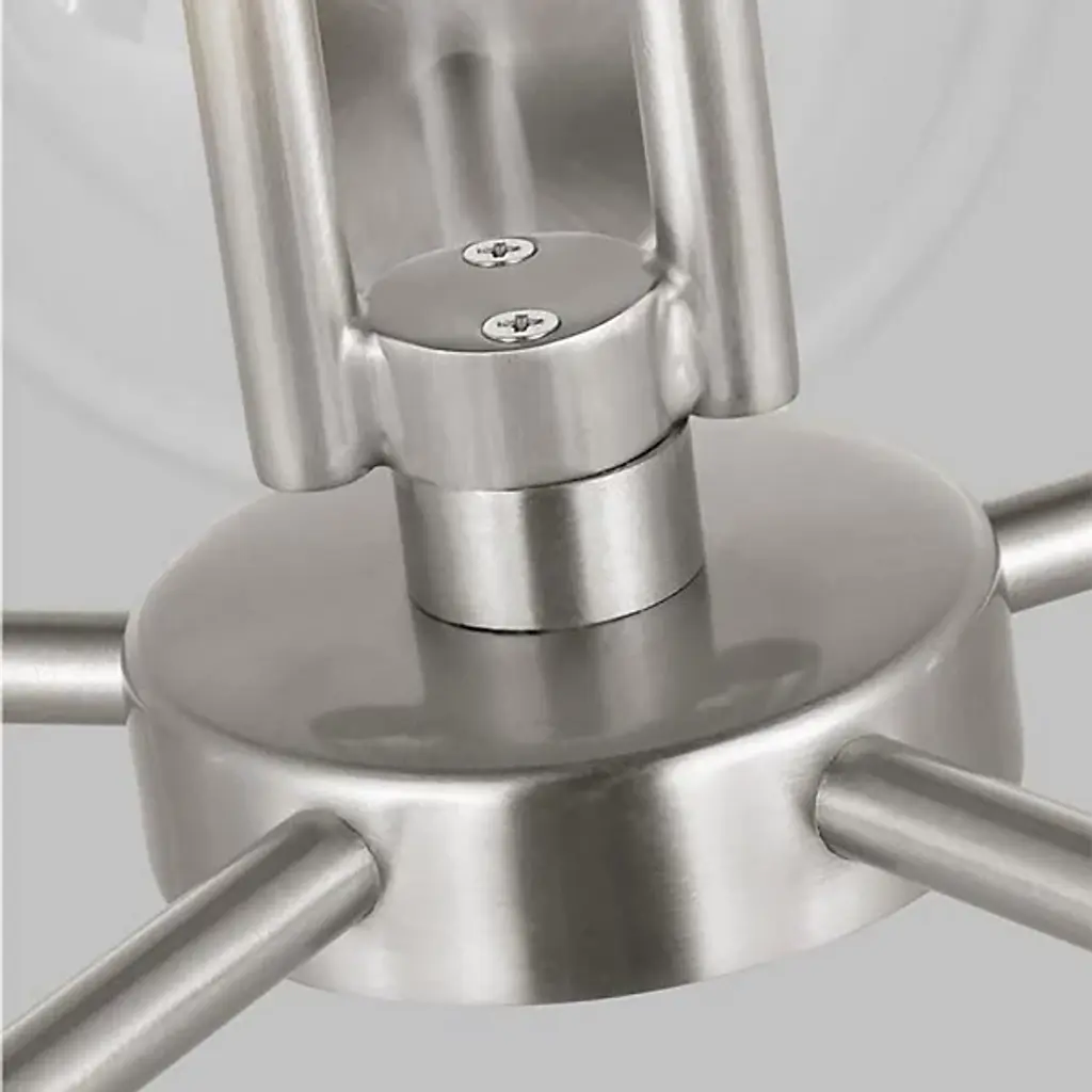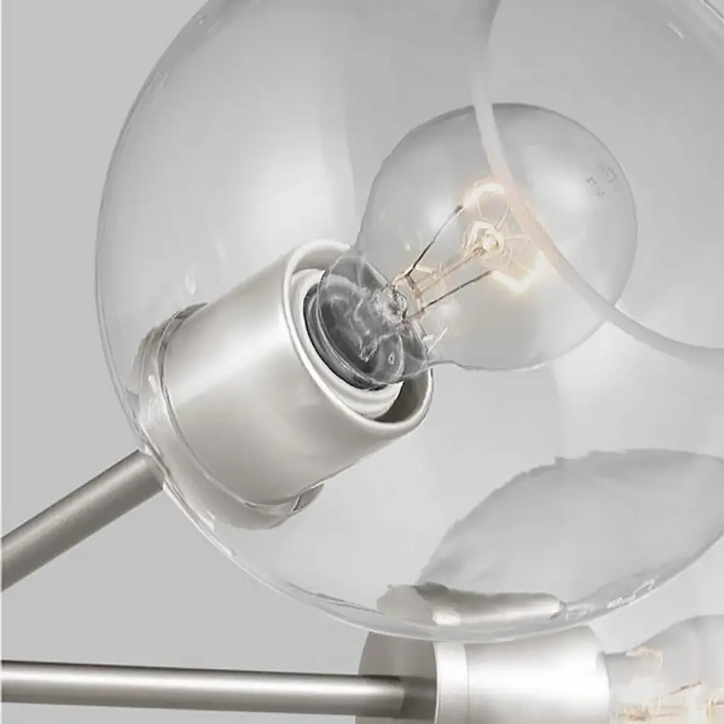 Capture the old with the new as stunning clear glass globe shades create a gorgeous glow. The Codyn Chandelier from Visual Comfort Studio, formerly known as Sea Gull Lighting, features a five-light single-tier chandelier in a contemporary take on a classic mid-century design. Clear glass shades with open-ended spheres accent the elongated keyhole strap detail for a clean look. This minimalist fixture relies on subtle details to create visual interest.
