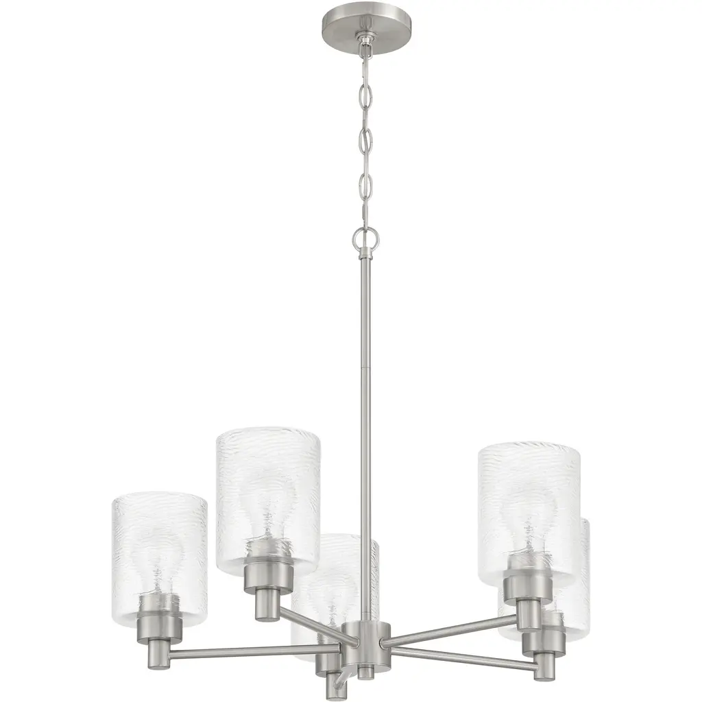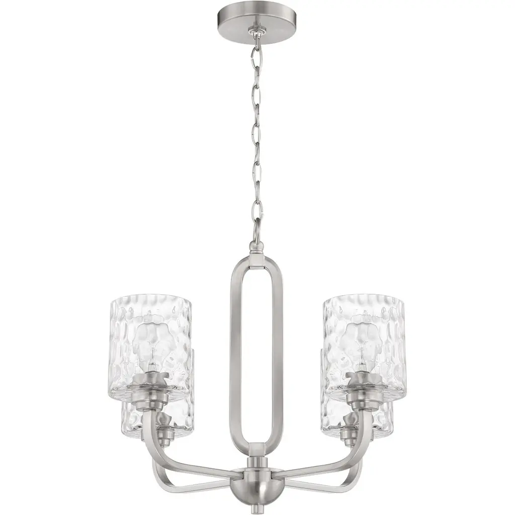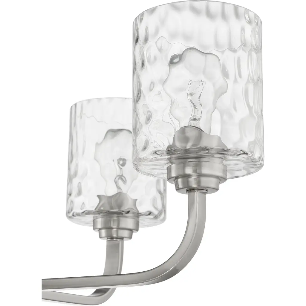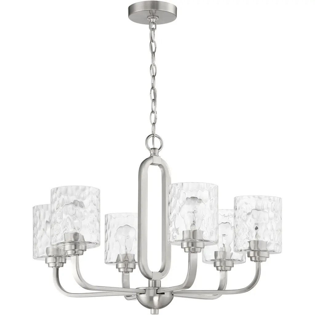 The Collins collection by Craftmade offers a sense of style that cannot be confined. Graceful geometric elements playfully capture the clear hammered glass shades to deliver a warm, welcoming wash of light.