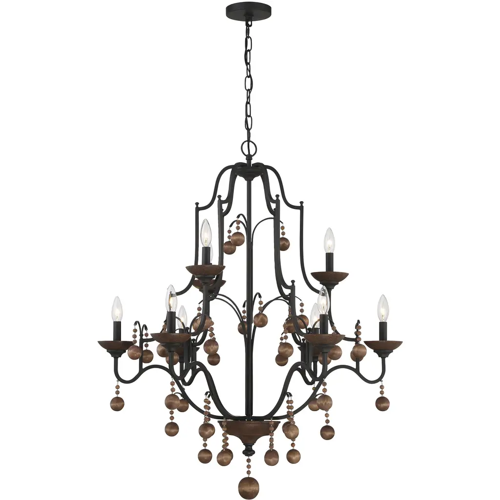 Colonial Charm 9 Light 33 Inch Old World Bronze/walnut Accents Chandelier Ceiling Light