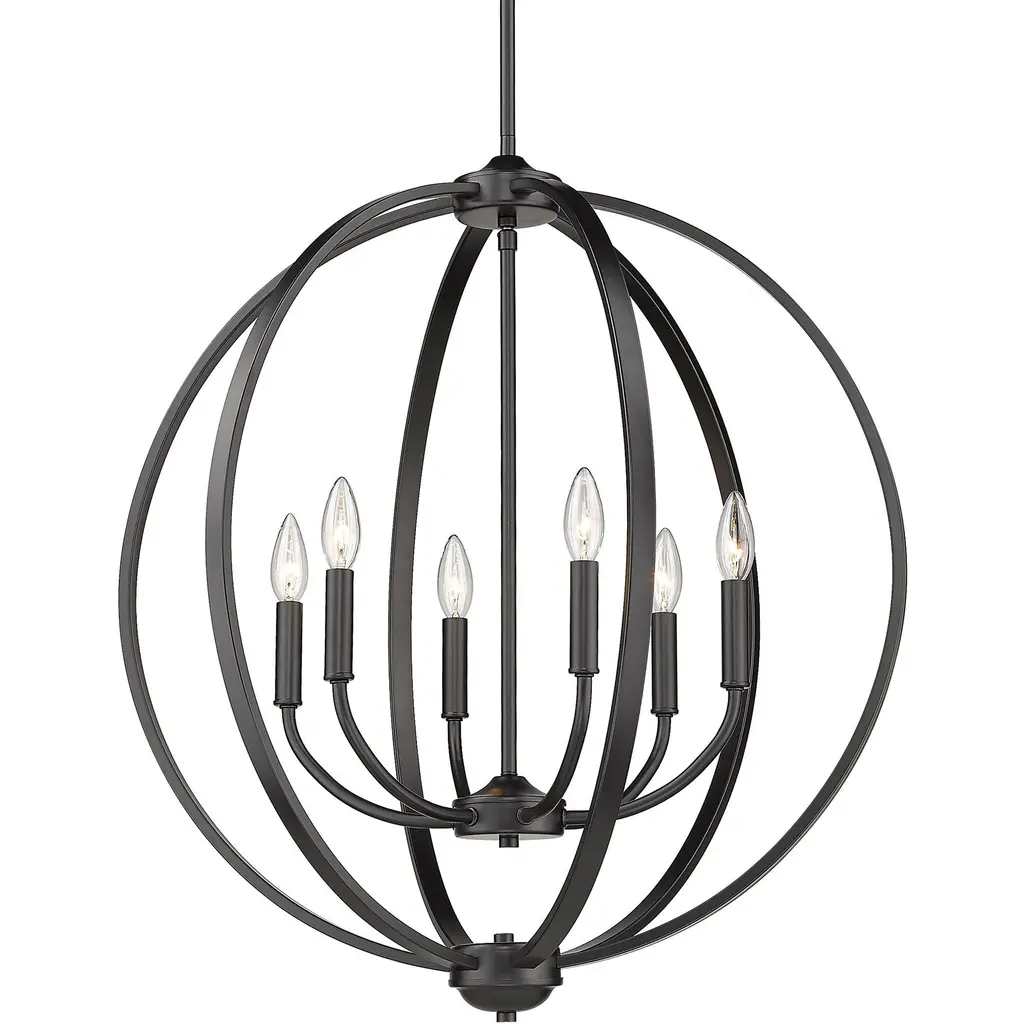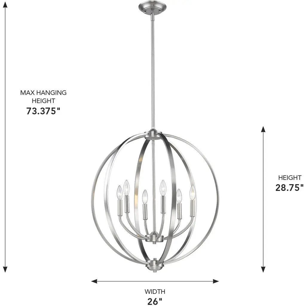 Bring Transitional elegance into your home with the Golden Lighting Colson 6-light Chandelier. With a Pewter finish, it creates a welcoming atmosphere.This chandelier features no shade, allowing the beauty of its intricate candelabra design to shine through. Ideal for creating a soft, elegant ambience, it works wonderfully in both classic and contemporary spaces.Our Pewter finish provides a versatile and sophisticated appeal with its medium-grey hue and subtle warmth, crafted through a durable electroplating process that casts a beautiful, non-glare glow.This fixture is Dry Location Rated, making it perfect for indoor applications like dining rooms and living spaces. It is also designed to be sloped-ceiling compatible and features an adjustable height, allowing customization for various settings.Overall dimensions are 26"W x 28.75"H x 26"D, requiring six E12 Candelabra base bulbs (not included), each with a maximum wattage of 60.Enhance your home with the refined beauty and exceptional craftsmanship of Golden Lighting.