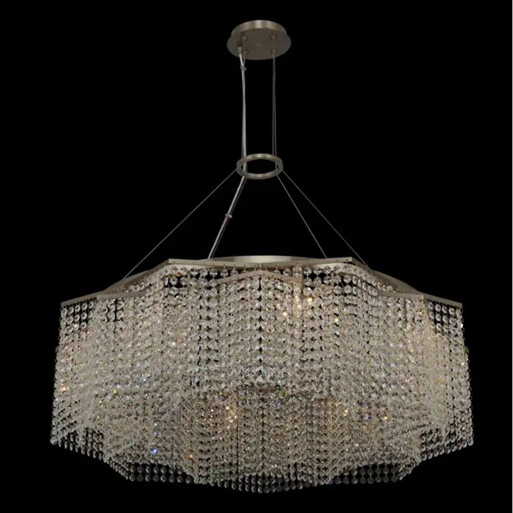 Descending brilliantly like a shooting star, the Cometa Chandelier from Allegri by Kalco Lighting dazzles with a myriad of details from corner to corner. The modern, boho chic piece draws inspiration from floral silhouettes. It sports a low-profile metal framework for a weightless look. Artisans apply Firenze crystals in layers for a pattern evocative of a blooming rose. A feast of colors and highlights fill up the crystals as they ease out a warm, filling glow.