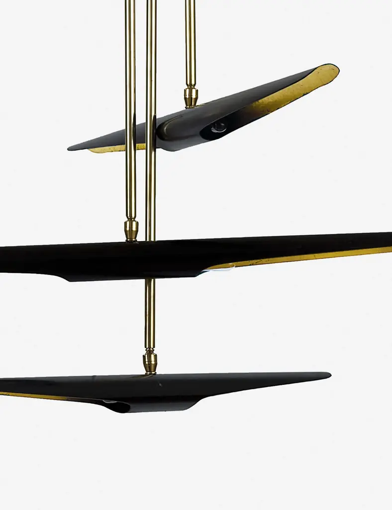 Let your modern style take flight with this impressive chandelier. Featuring three wing-like pieces with a gold-leaf interior, it illuminates your space in aerodynamic statement-making fashion.