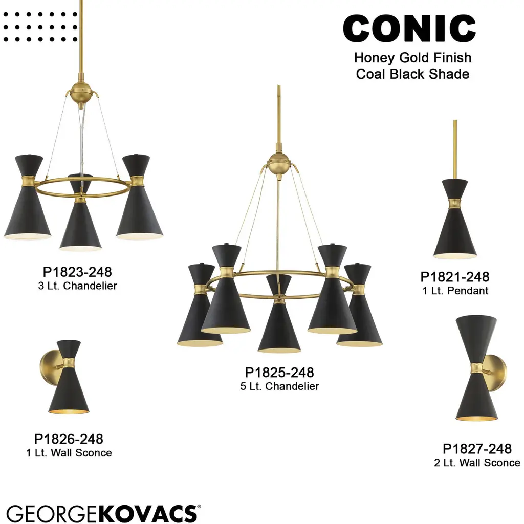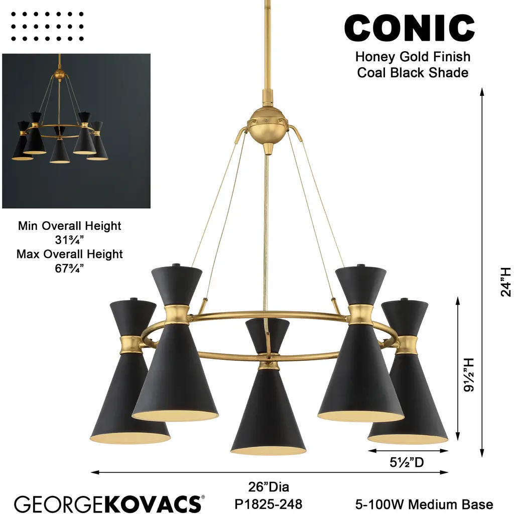 Conic 5 Light 26 Inch Honey Gold Chandelier Ceiling Light