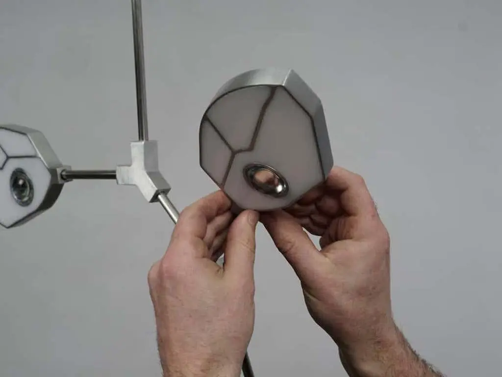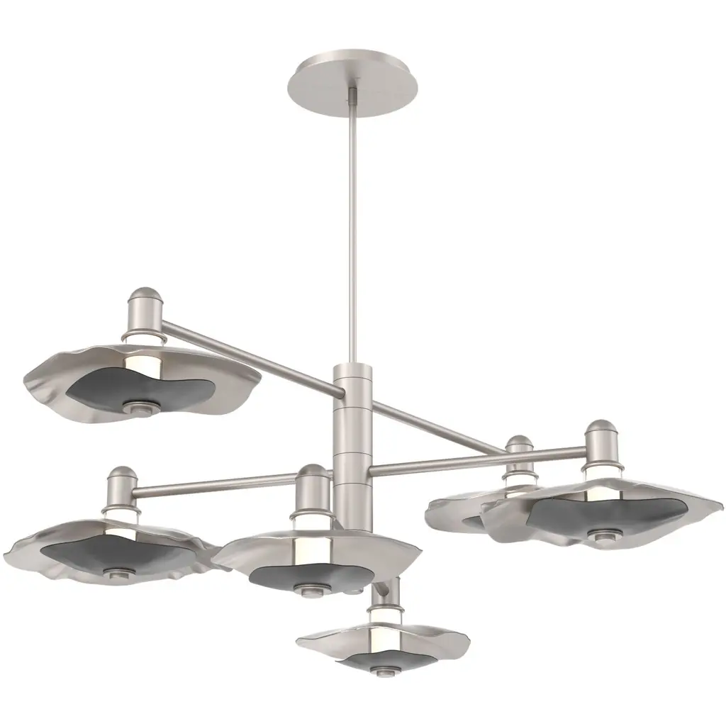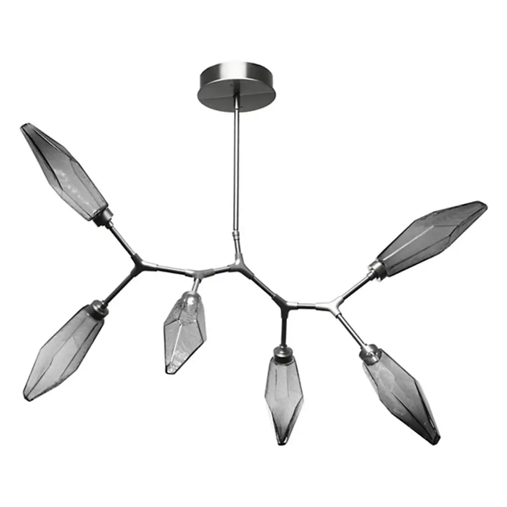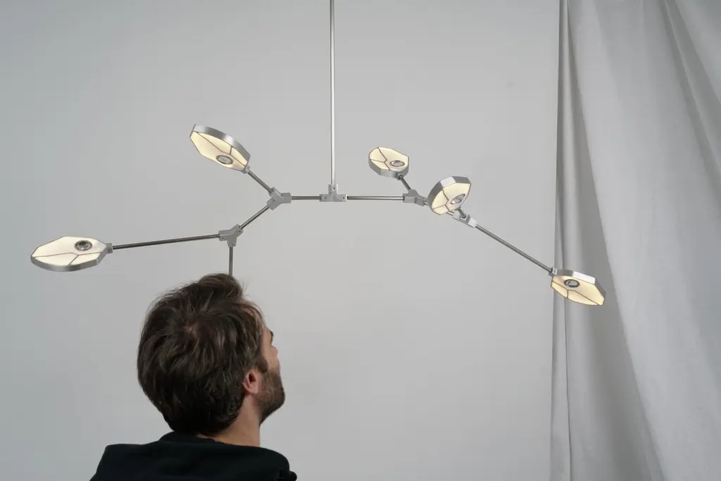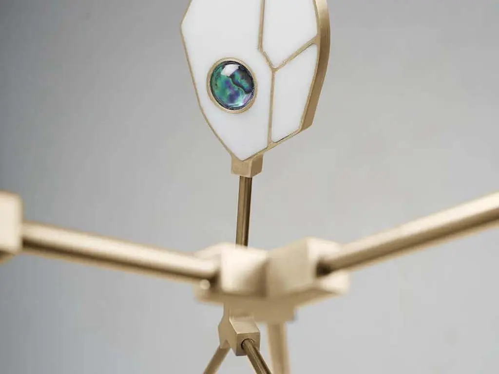 Taking inspiration from the necessity of light for life, the Joni range is a portrayal of photosynthesis, the process by which plants convert sunlight to food. Within each leaf-like LED light structure, a crystal hemisphere magnifies an iridescent Páua shell, native to New Zealand’s east coast and a nod to the designer Matt Holleman's heritage. The piece is available in brass, nickel or blackened-bronze finish as standard with alternative finishes available on request.The given height excludes stem length which is made to order. As this piece is handmade from our Swedish workshop it is fully customisable on request. We are always happy to provide drawings with design/sizing suggestions if you can provide basic spatial details of your space.