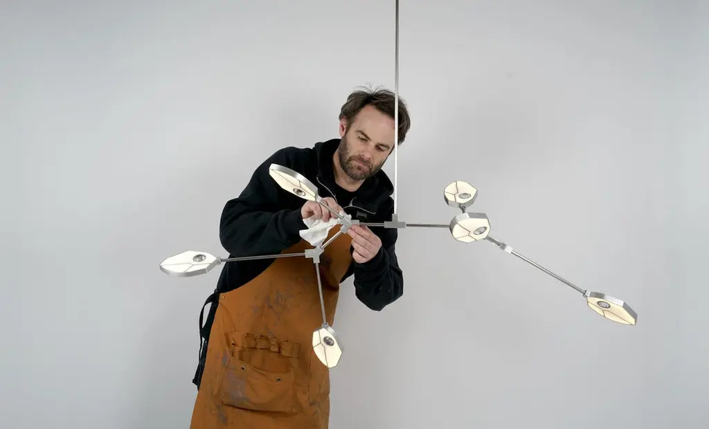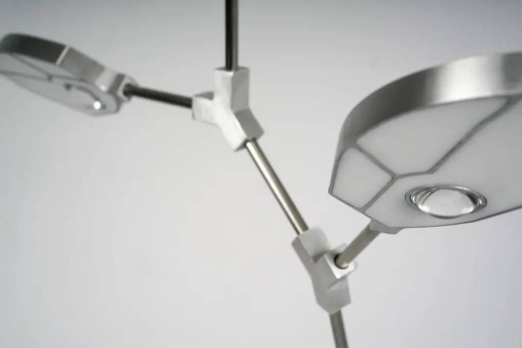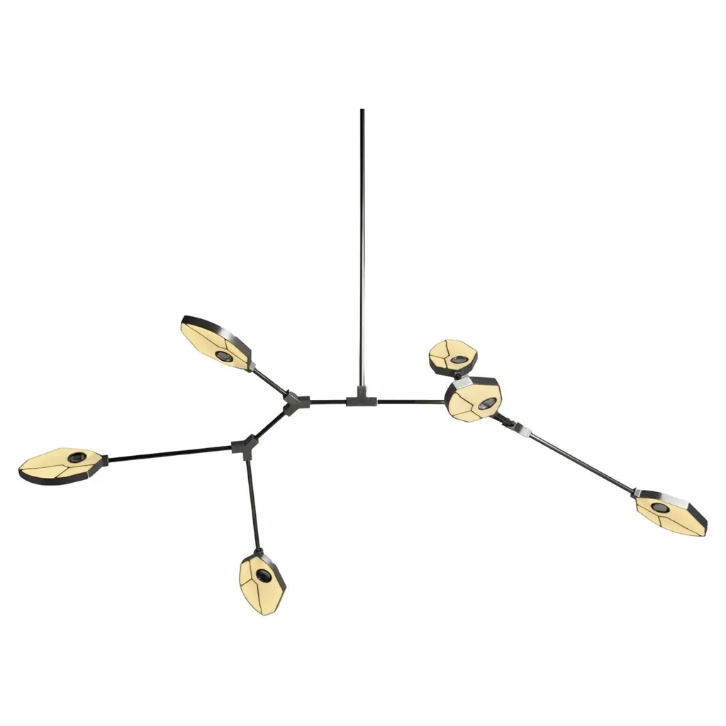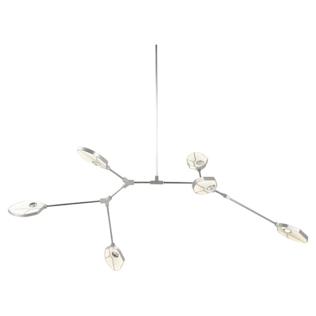 Taking inspiration from the necessity of light for life, the Joni range is a portrayal of photosynthesis, the process by which plants convert sunlight to food. Within each leaf-like LED light structure, a crystal hemisphere magnifies an iridescent Páua shell, native to New Zealand’s east coast and a nod to the designer Matt Holleman's heritage. The piece is available in brass, nickel or blackened-bronze finish as standard with alternative finishes available on request.The given height excludes stem length which is made to order. As this piece is handmade from our Swedish workshop it is fully customisable on request. We are always happy to provide drawings with design/sizing suggestions if you can provide basic spatial details of your space.