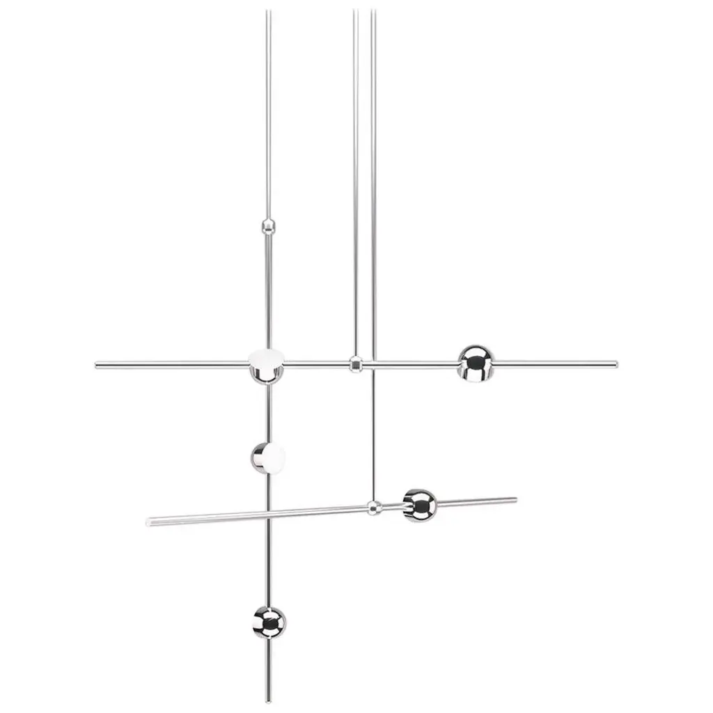Pinpoint beauty. The Coordinates C4 LED Chandelier from FLOS is an aptly named piece finding inspiration in the mathematical precision of the Cartesian grid. Designer Michael Anastassiades creates with longevity in mind. Longevity not only in materials but in looks. His works don’t box themselves into a certain designer style or era, opting for a clean aesthetic where subtraction is practiced. This subtractive process shows in the chandelier’s pure arrangement of lines. These lines are made from extruded aluminum and are as sleek as can be. Complementing the metal, platinum silicone diffusers line the opposite side, concealing an LED array. Creating a captivating grid silhouette, the LEDs shine in all four directions with mathematical precision as a generous aura of light.