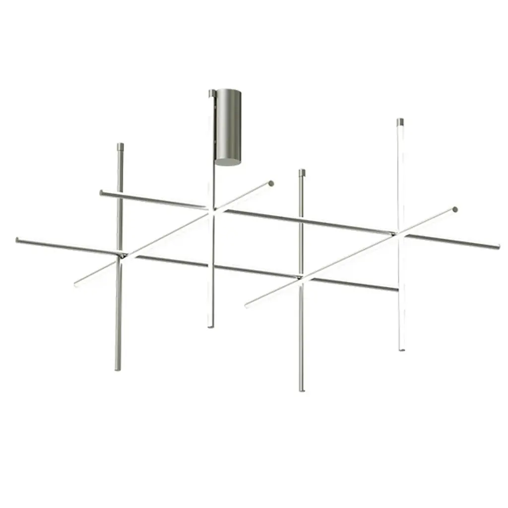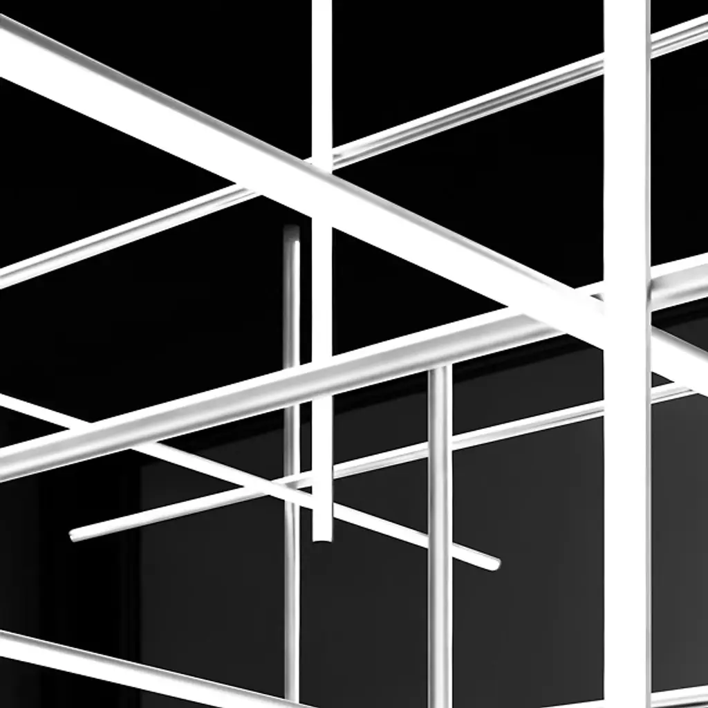 Sleek, sophisticated, exact. With the Coordinates Module S LED Chandelier from FLOS, designer Michael Anastassiades marries lighting systems with the geometric perfection of the Cartesian grid. Like a sculptor carves marble, Michael Anastassiades carves out elements in his designs to get to the essence of his ideas. As Anastassiades shows, nothing is as essential as pure geometry. With the squares of the Cartesian grid as a guide, fine extruded aluminum rods create an open, dynamic composition. Moving around the piece reveals the calculated placement of the light-filtering opal platinic silicone diffusers. Pointing up, down, and to the sides, the diffusers push out a crisp stream of LED lighting. The LEDs leave rooms with a warm aura and a graphic silhouette. The fine cable suspension heightens the seemingly floating quality of this piece.