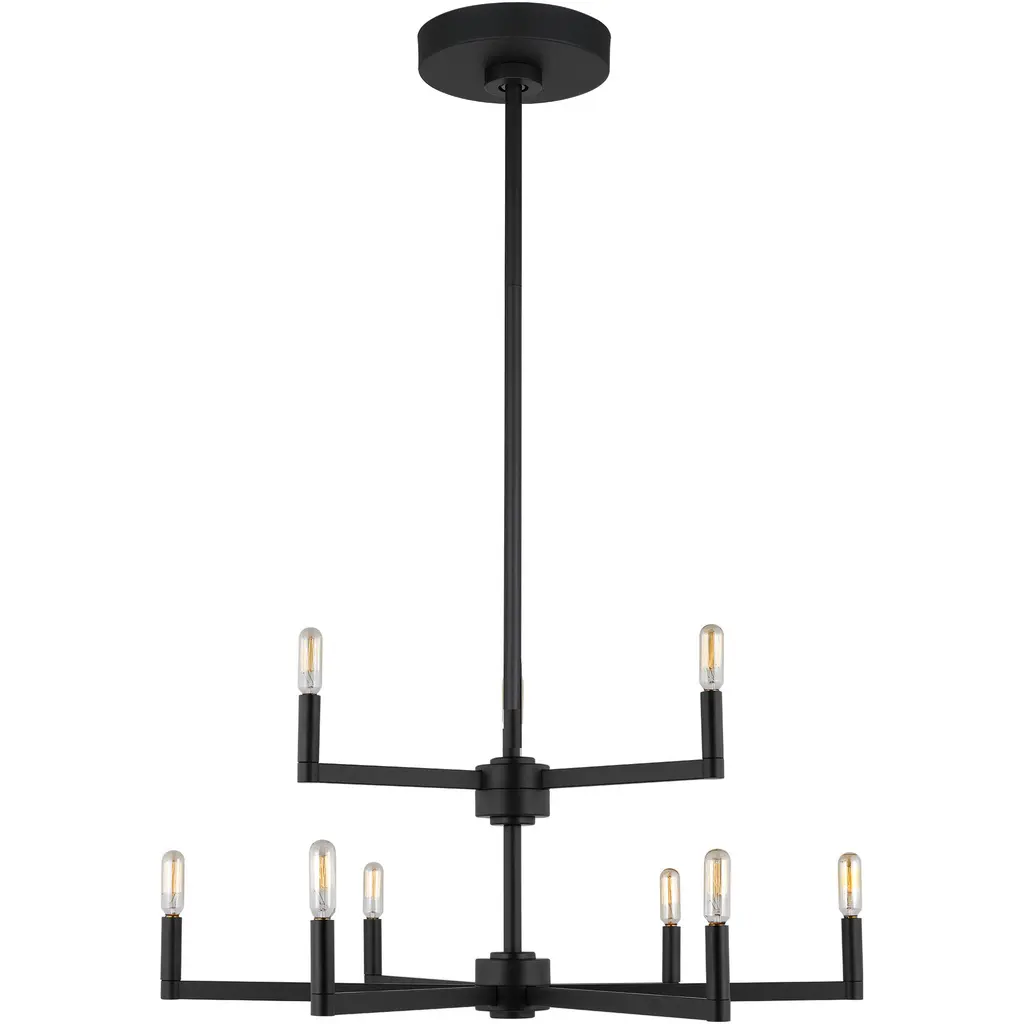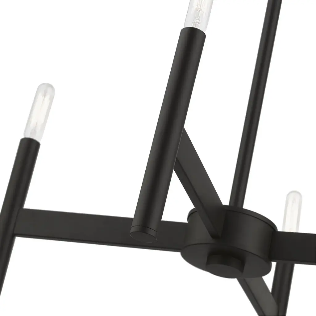 Exposed bulb sockets are fixed over black to create an eclectic look perfect for mid century modern or transitional spaces wanting an industrial touch.