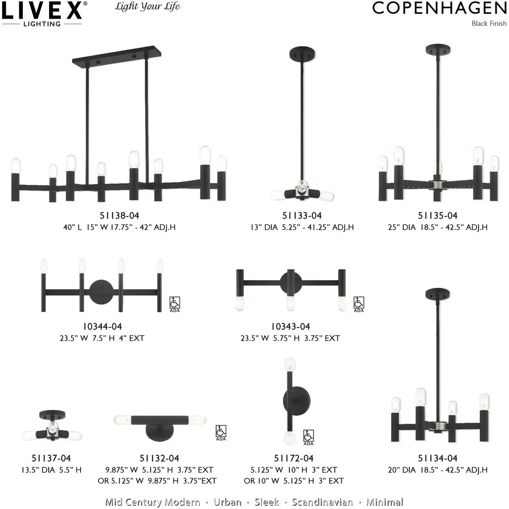 Copenhagen 5 Light 25 Inch Black Chandelier Ceiling Light