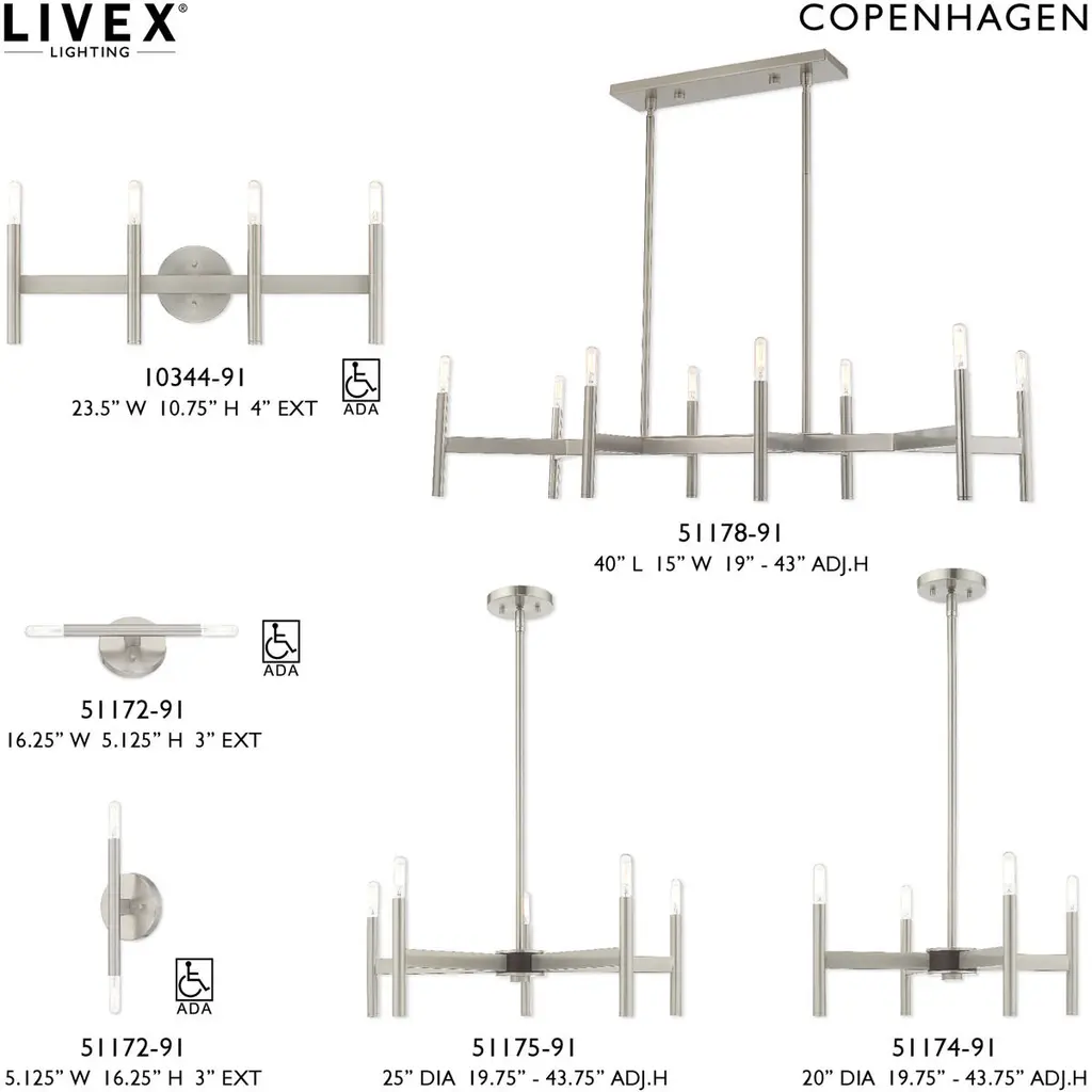 Copenhagen 8 Light 40 Inch Brushed Nickel Linear Chandelier Ceiling Light