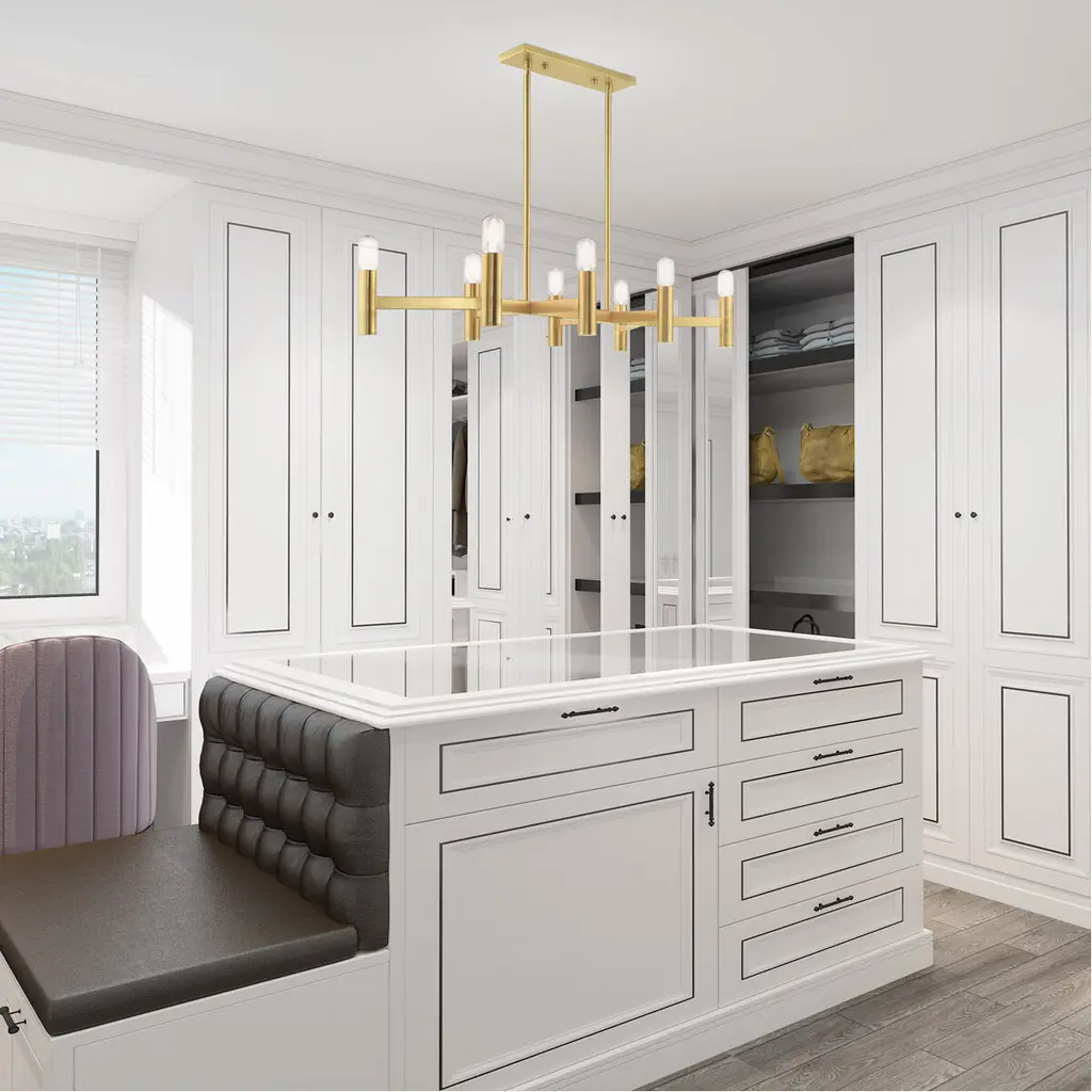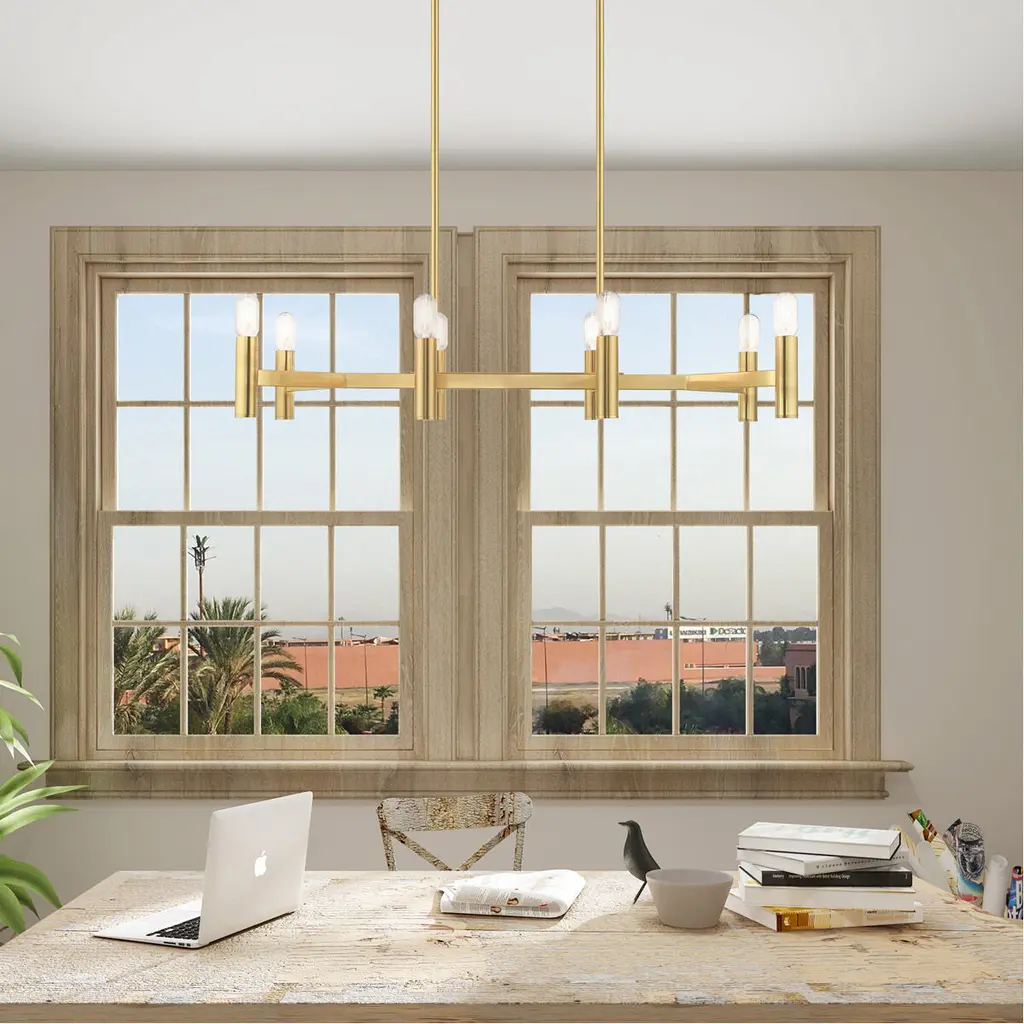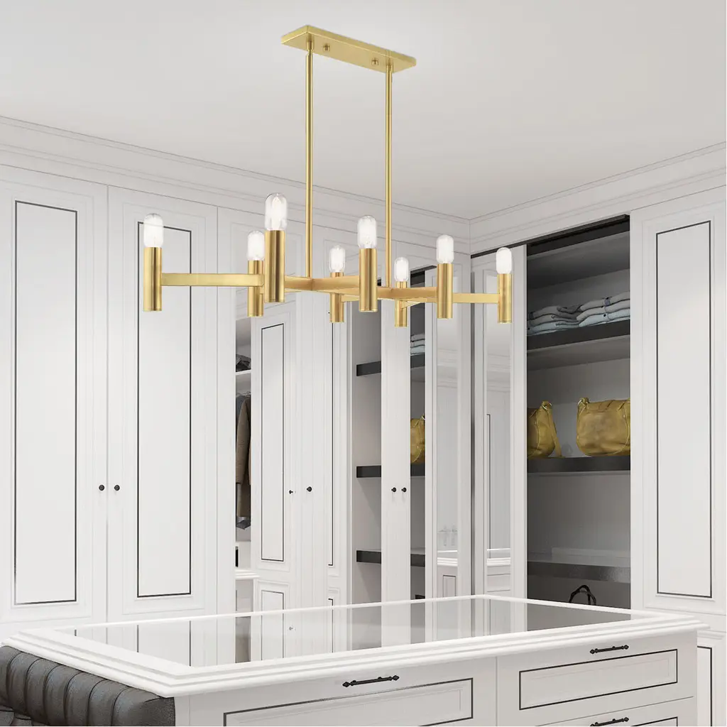 8 Lt Satin Brass Linear Chandelier