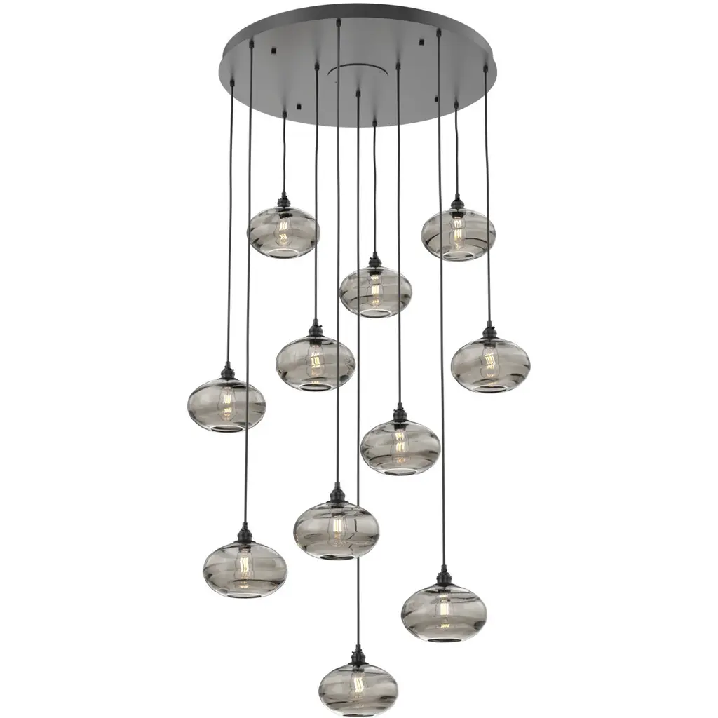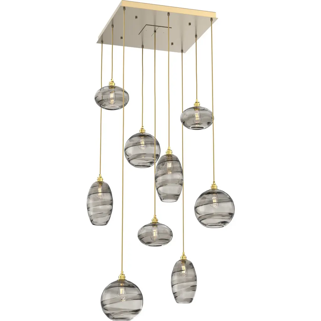 Coppa Round Multi-Port-11-Gilded Brass-Optic Blown Glass - Smoke-Brass Cloth Braided Cord-E26