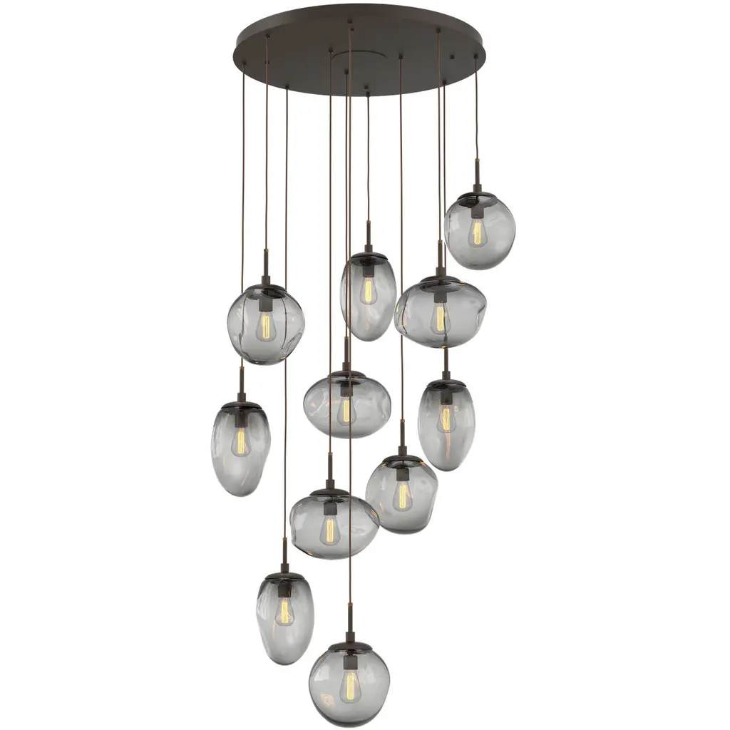 Coppa Square Multi-Port-12-Flat Bronze-Optic Blown Glass - Smoke-Bronze Cloth Braided Cord-E26